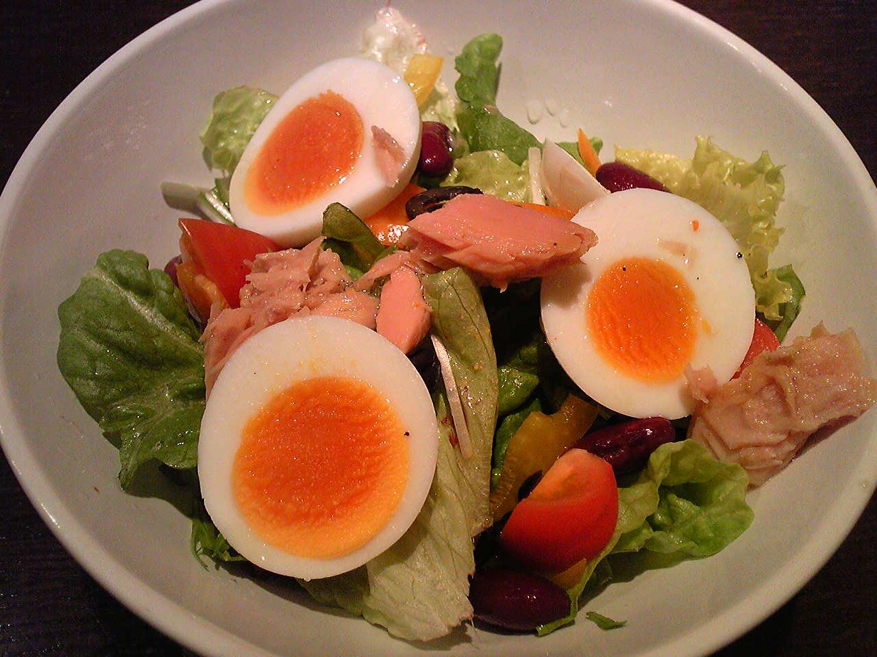 サラダはゆで卵やツナなども入った食べごたえのあるもの。ポークジンジャーもボリューム充分で美味しかったです。