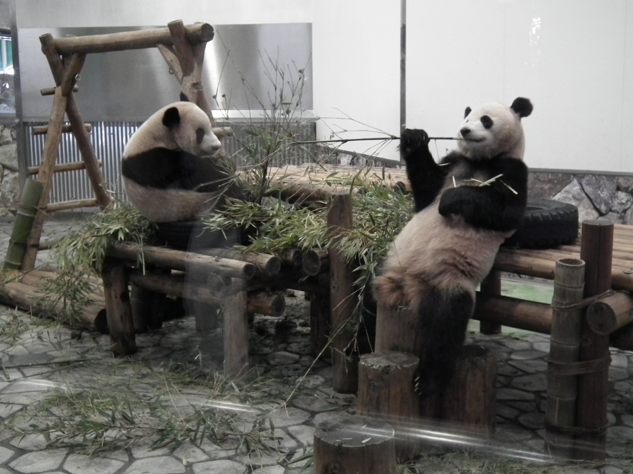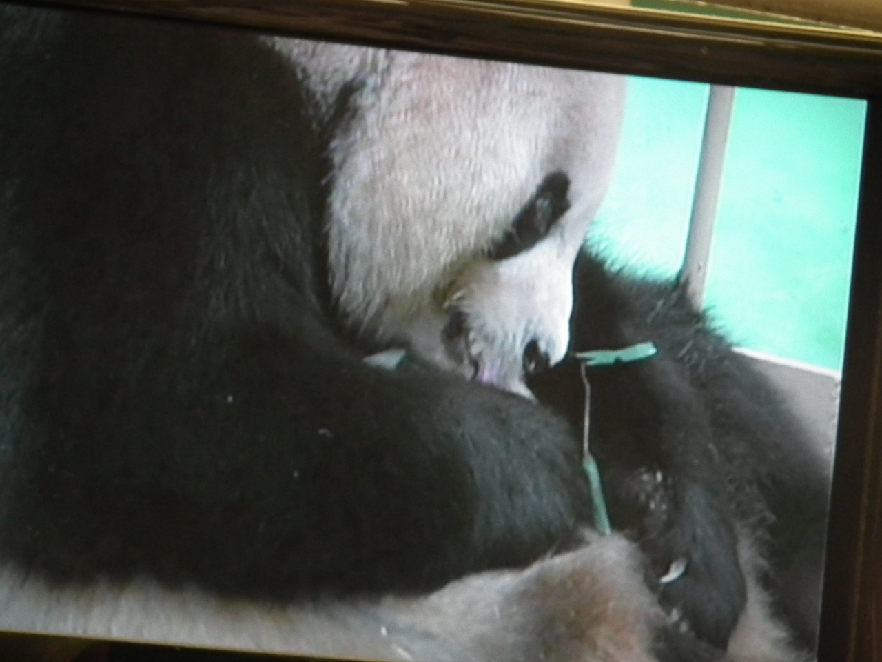 パンダの赤ちゃんを見にアドベンチャーワールド行きました。12時に着いてまずはパンダランドへ、赤ちゃん(生後2ヵ月ぐらい→写真)の午後の公開は3時からでしたので、ここで生まれたふたごのパンダ「海浜」と「陽浜」を見ました。次に隣にあるビッグオーシャンで2時からのマリンライブ見に行きました。ここでショーが始まるのを待っている時に目の前に旅客機が着陸するのを見て、南紀白浜空港の隣なのだと気が付きました。ショーも楽しく、特にイルカに乗る演技は素晴らしく、女性も参加していましたが「城みちる」を思い出しました。2時半(30分)にショーは終わり、すぐにパンダランドへ、長蛇の列が出来ていましたが、3時までに並べば見ることが出来ていました。実際には、赤ちゃんは母親の腕のなかで、テレビモニターの画像で赤ちゃんを見ました。その次は海獣館からペンギン王国、5時30分から(30分)アニマルランドでアニマルアクションショーを見ました。夜のマリンライブや花火のイベントを見に、夕方から昼間以上に人が増えてきました。まだまだ一部分しか見ていませんが、我々は美味しい海の幸を食べに宿に帰りました。わいるどだろー
