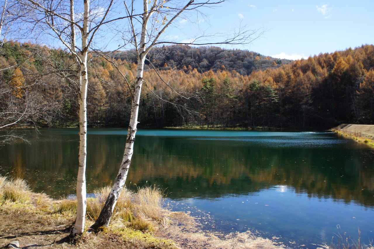 静寂な森と湖の風景を描いた東山魁夷のモチーフとなった場所として、ぐんぐん人気が出ている場所です。人工のため池で、田畑に水を流す前に、ここである程度水を温める目的で作られたようですが、透明感のある湖面が日に照らされてきらきら光る様は、ただごとではない美しさを持っています。この時期はトドマツの紅葉も盛りで、湖面に映った山の姿と合わさって、本当にすばらしい眺めでした。