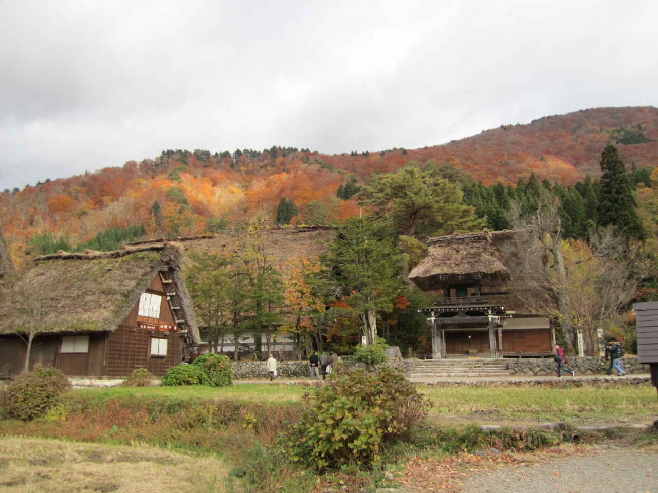 肉眼では、紅葉も楽しみながら合掌作りの家屋を見学できて