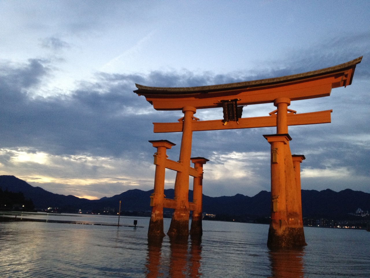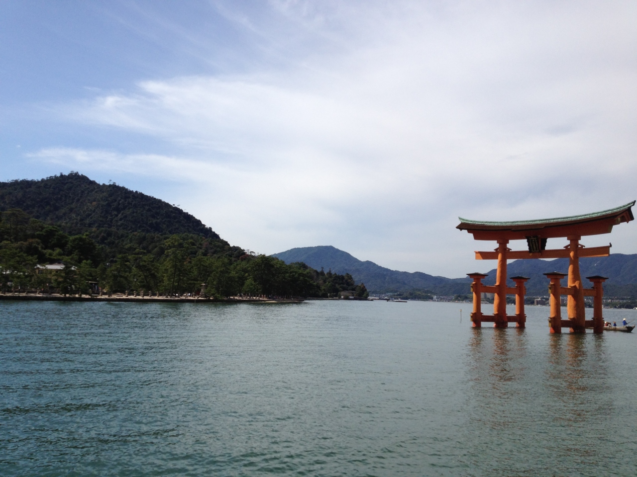 満潮のときと干潮のときとでは風景がまったく異なるので、事前に時間を調べていくといいですね。私が行ったときは、お昼頃が満潮だったので、着いてすぐに水に浮かぶ姿を堪能した後、弥山に登ってきて、降りてきたらかなり水が引いていて、干潮時にちょうど日没となりました。それぞれに違う美しさがあって良かったと思います。