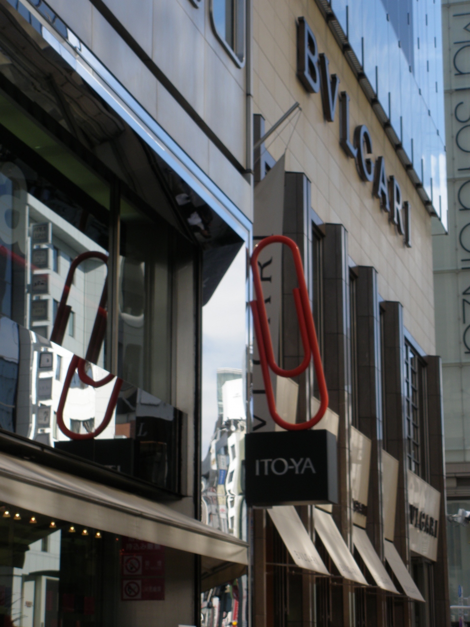 東京銀座・中央通り沿いにレッド・クリップがシンボルの“銀座・伊東屋”があります。