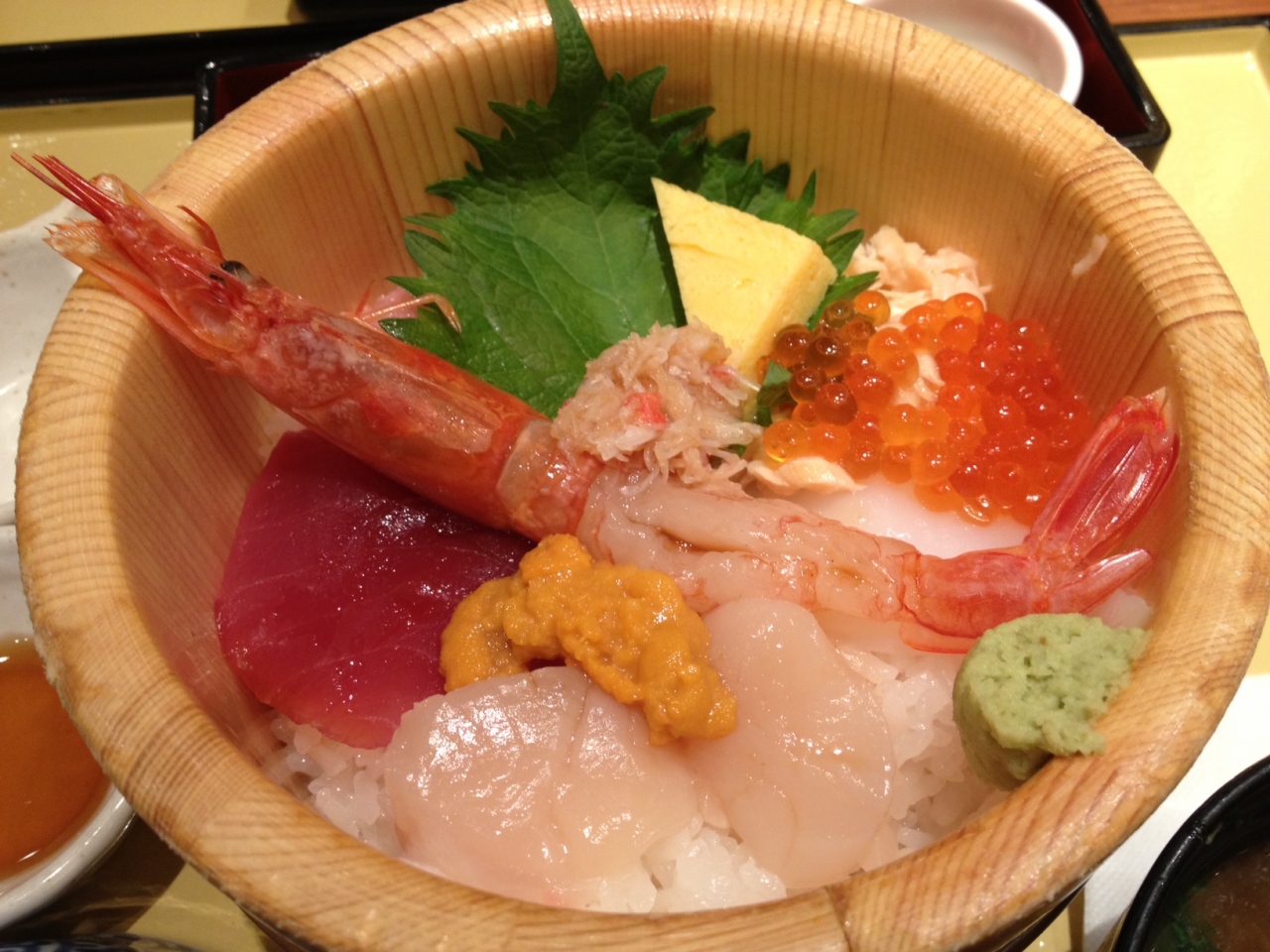 イオン大日店の中に入っている「四六時中」でランチをいただきました!お店のオススメと幟が立っていた「海鮮にぎわいおひつごはん」をオーダー。でてきたのは、「にぎわい」というには少々寂しい海鮮の盛り方ですが、千円以下でこれなら納得。ここのおひつごはんは、1.最初は、そのまま食べる。2.醤油ダレをかけて食べる。3.おダシをかけ、お茶漬けで食べる。と3通りの食べ方が楽しめます!