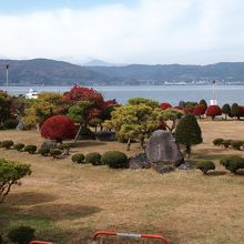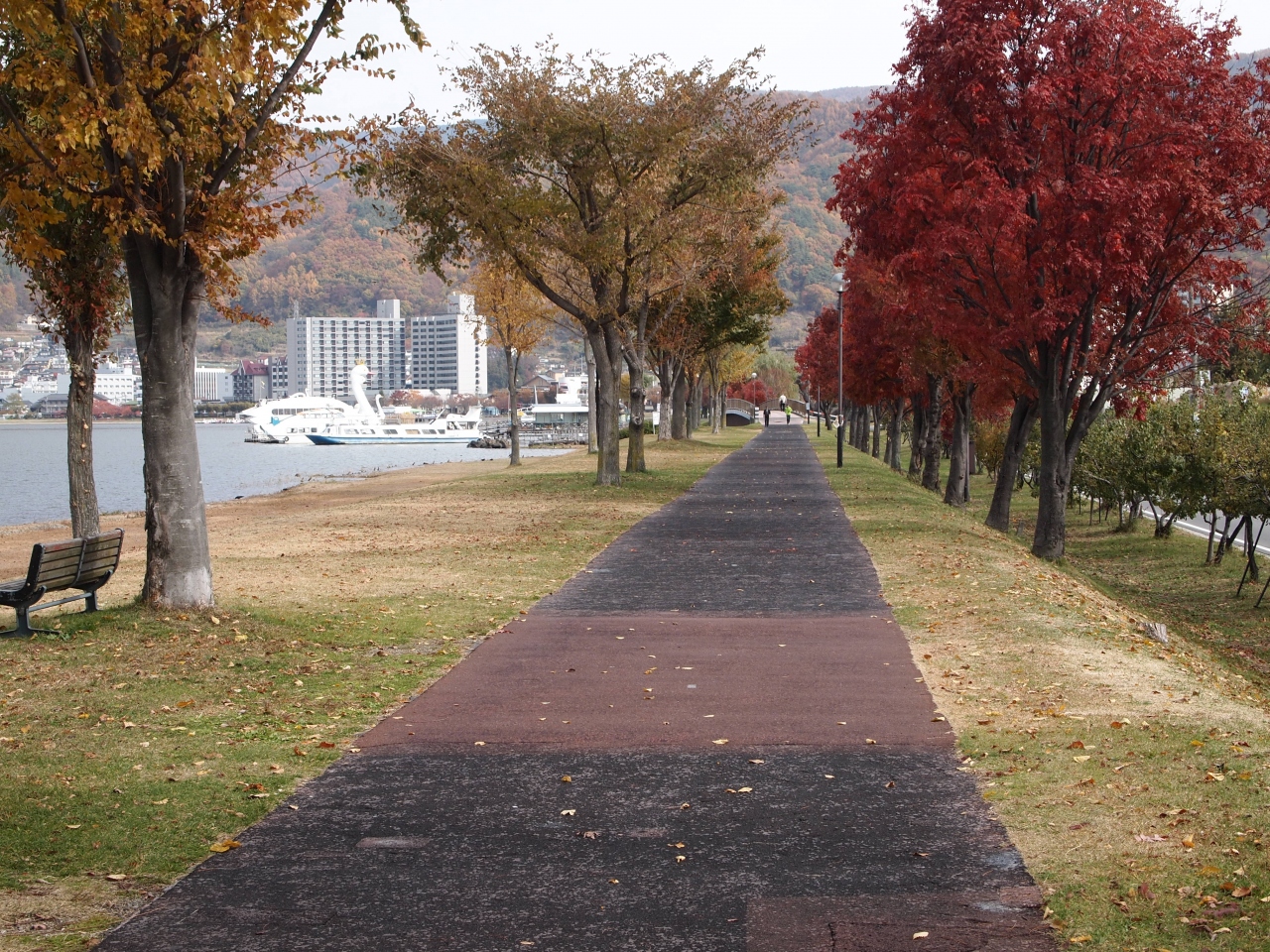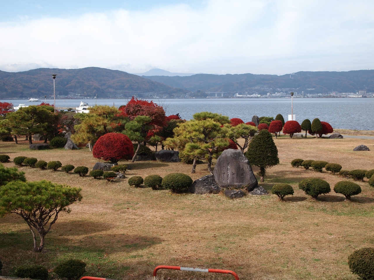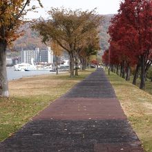 上諏訪の街の諏訪湖畔よりには遊歩道や公園が続いています。