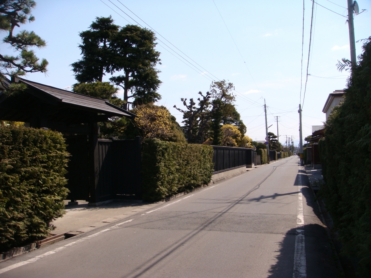 昔ながらの門や板塀・生垣など、伝統的な町並みが残っています。