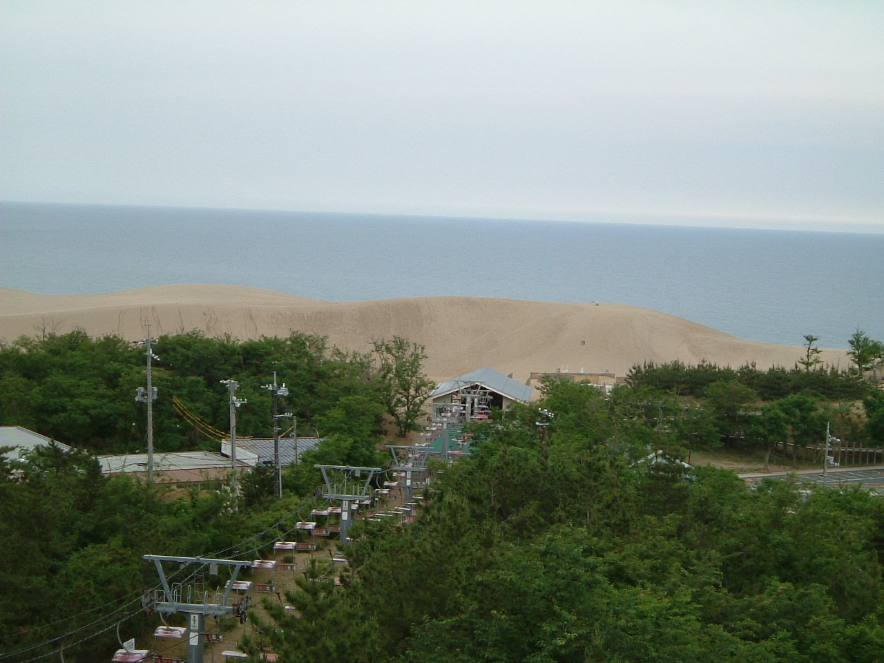 日本最大規模の起伏を持った砂丘として知られている、東西16km・南北2km・最高起伏47m有るそうです、鳥取砂丘では自然によって造りだされる幻想的な風紋やすりばちを見ることも出来ます、パラグライダーなどのアウトドアスポーツ・らくだに乗って砂丘めぐり・遊覧馬車などが有り、お土産屋の裏に年代地層が出ているところが有ります、展望台の方からもリフトで砂丘に降りられます。