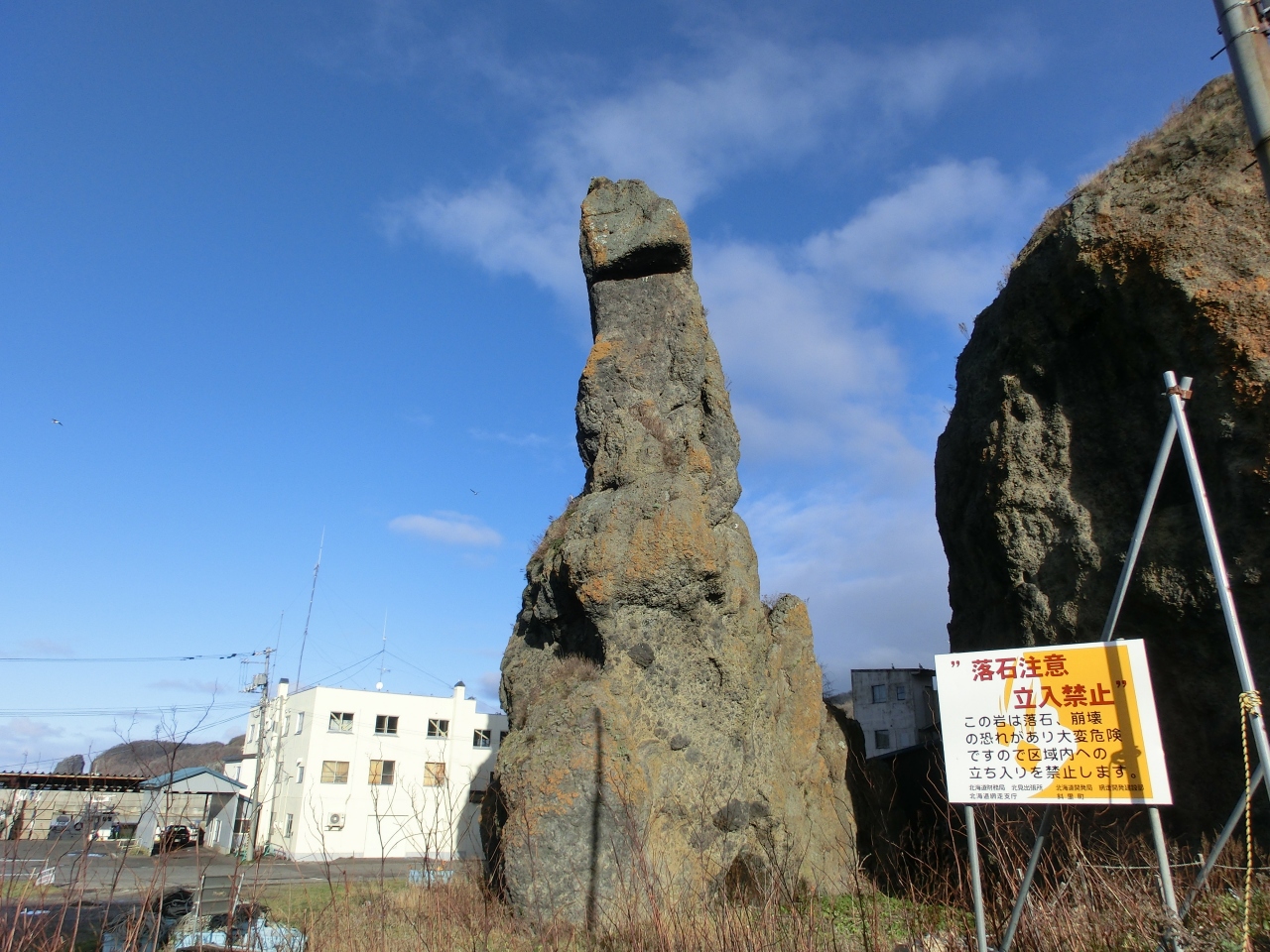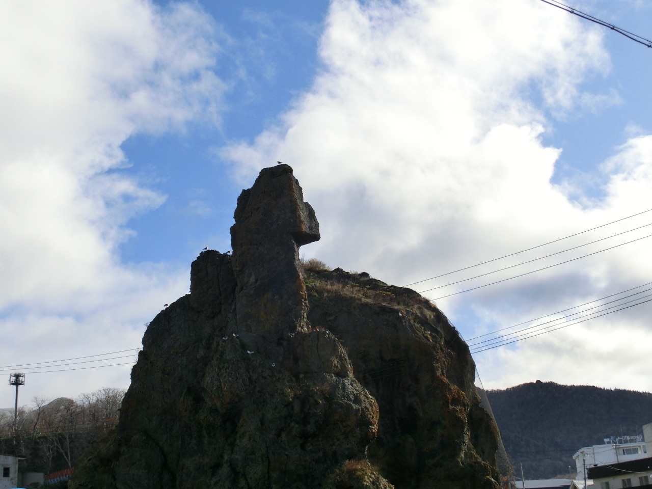 知床観光船受け付けのすぐ近くに有ります。国道からも見えます。オロンコ岩も近くです。ウトロ漁港やオロンコ岩と一緒に観光すると良いでしょう。駐車場はありません。少し離れた所から見るとそっくりです。落石に注意しましょう。