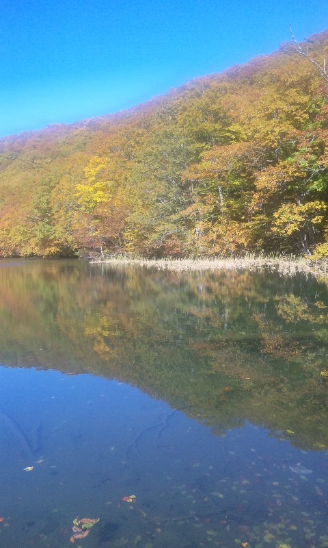 蔦温泉に泊まった折には朝に散歩がてら蔦沼までは歩いたことはありましたが、今回初めて沼巡りコースを一周しました。蔦沼の折り返しには結構歩いている方も多いですが、沼めぐり一周となると、人影は少なくなります。蔦沼を過ぎるとアップ&ダウンが多くなりますが、足元は落葉がふかふかして歩きやすいです。ただ蔦沼から回るコースだと見えてくる光景にはあまり華がなくなるので、出来れば最後に蔦沼を見るようにする方がお勧めです。