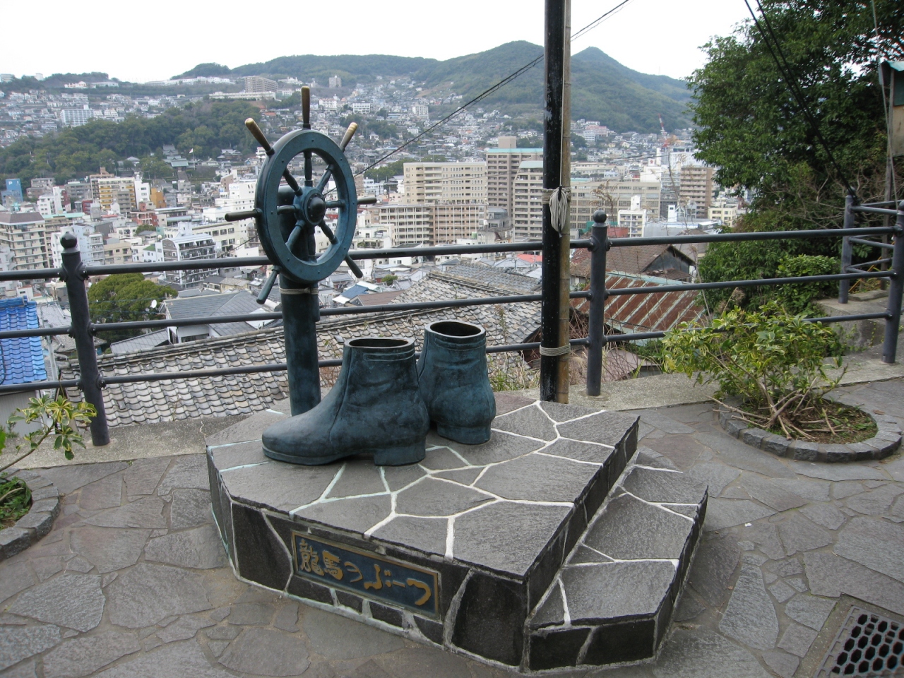 亀山社中跡から歩いてすぐの所にありました。坂本竜馬ブーツ公園・メモリアルという感じでした。いろんな思いが駆け巡りました。竜馬の心は西洋に向いていました、しかしまず日本がしっかりしないと。こういう実行力のある人物が日本にいてよかった。だがここまで歩いて登ってくるのは大変でした。