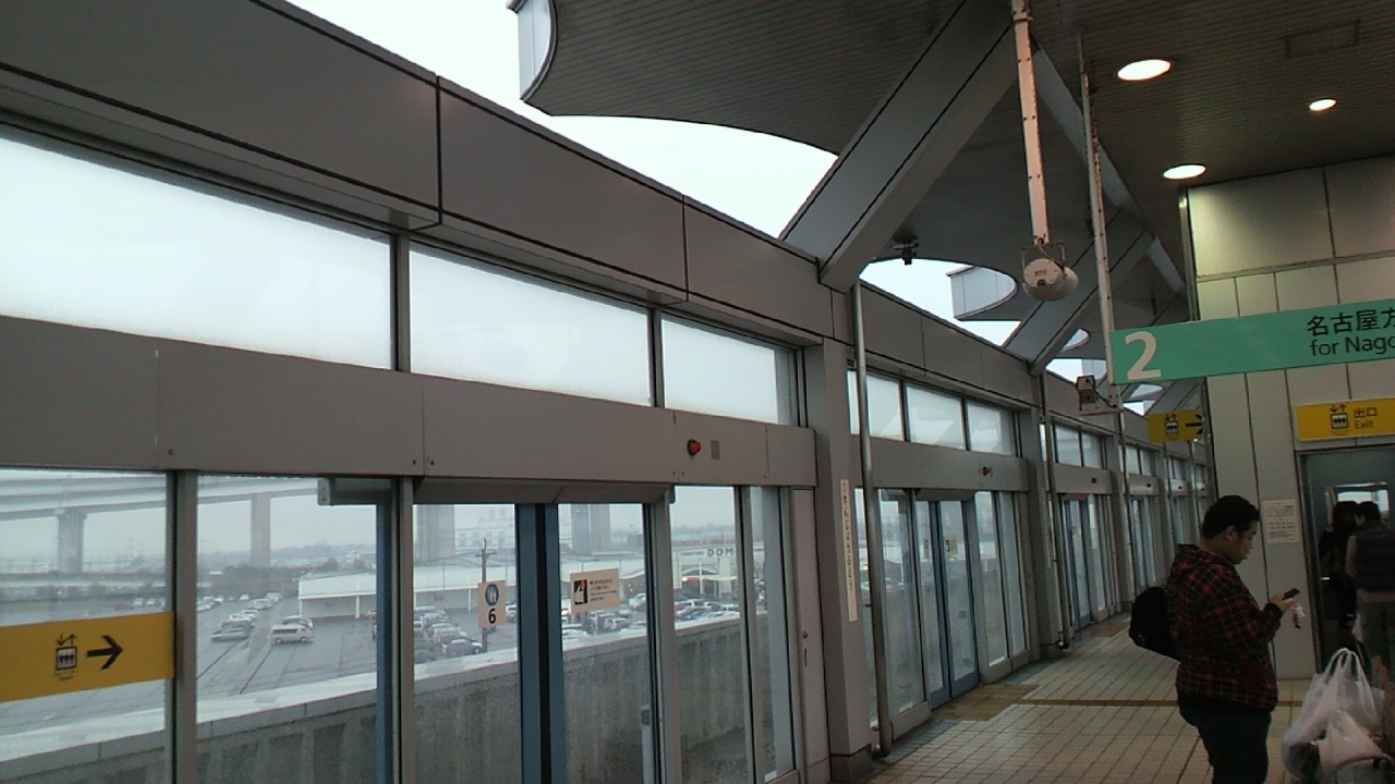 ポートメッセ(徒歩3分)やリニア鉄道館(徒歩2分)に最寄の駅で、1Fにはコンビニ「デイリー」がある。駅の機能としては一般的な駅だが、ホームでは転落防止の為のシールドが付いているが、ぱっとみは完全な仕切りになっているように見えるが、上部が開放になっている為、本日のような強い雨の場合、確実にぬれてしまう。
