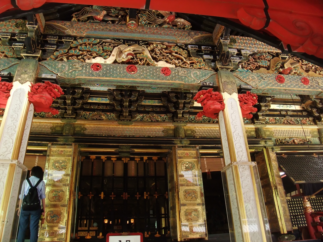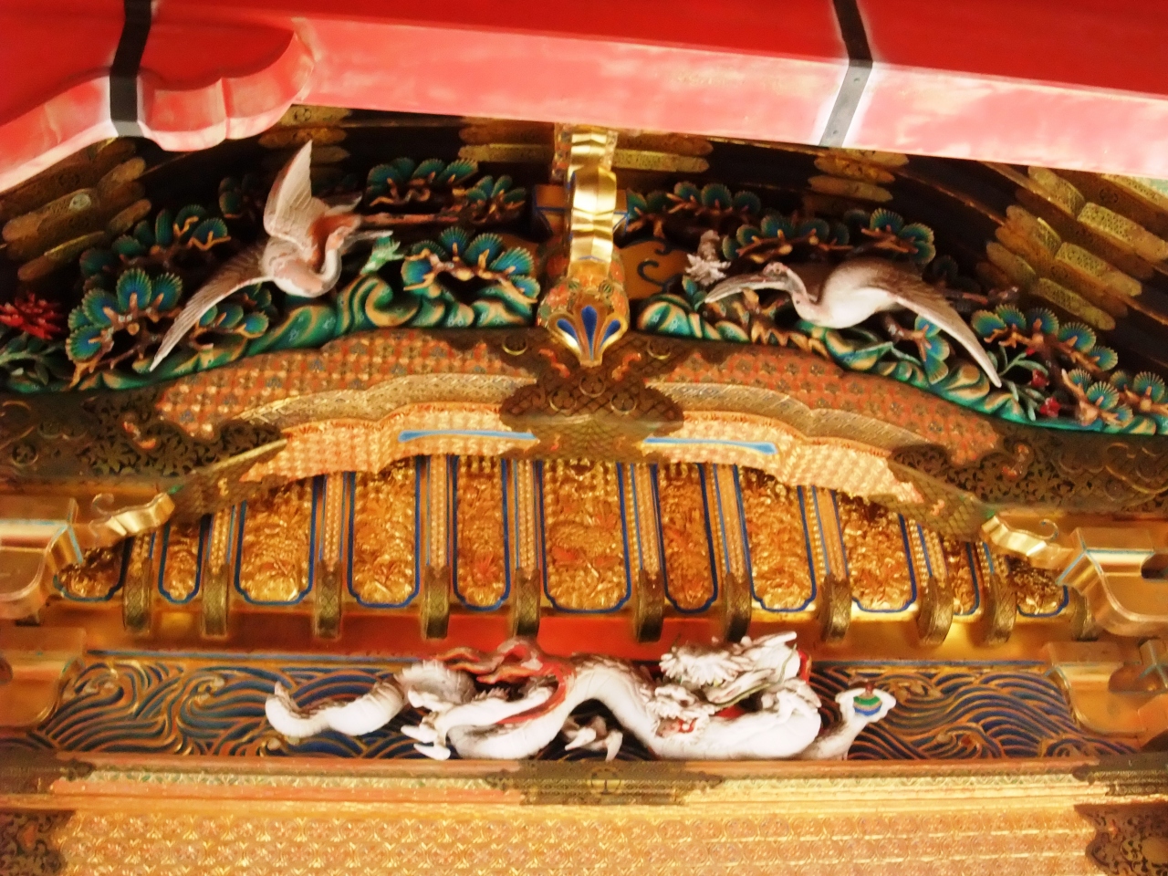 家光公が東照宮を模倣することをはばかったので、東照宮と異なり、大猷院は目立たない部分に技巧が凝らされています。色も、東照宮が白と金と黒とを基調にしているのに対し、大猷院は金と黒と赤が基調になっています。