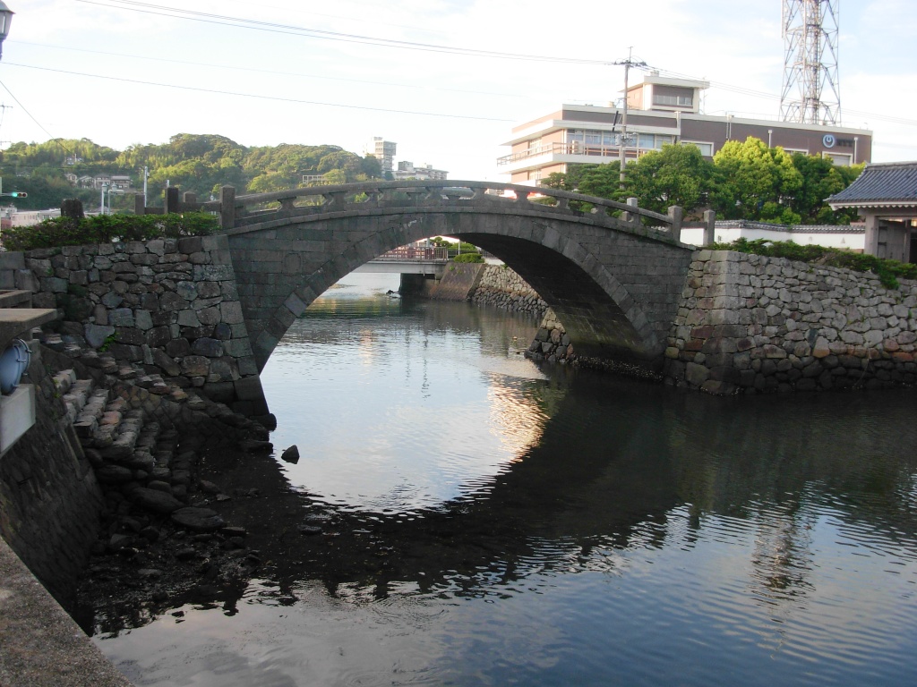 かつてオランダ商館があるなど、海外貿易と深い関係があった平戸らしく、オランダ橋と呼ばれる橋が今も残っています。オランダ商館建設に従事した日本人石工が、地元石工に技術を教えて造られた橋で1702年築です。商店街と市役所をつなぐ位置にありますが、周囲が観光化されていないせいか、すごくポツンとした感じ。