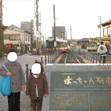 今は観光客向けの坊っちゃん列車。伊予鉄道開業当時から走っていた蒸気機関車がモデルになったとのこと。夏目漱石の小説「坊っちゃん」で登場人物が利用したことにより、「坊っちゃん列車」と言われるようになったとのこと。復元後の坊っちゃん列車は見た目は蒸気機関車ですがディーゼルエンジンだそうです。