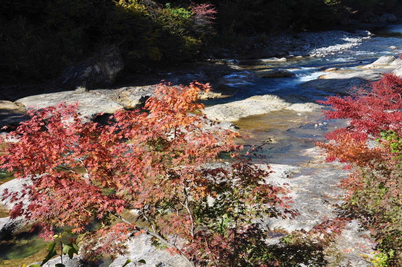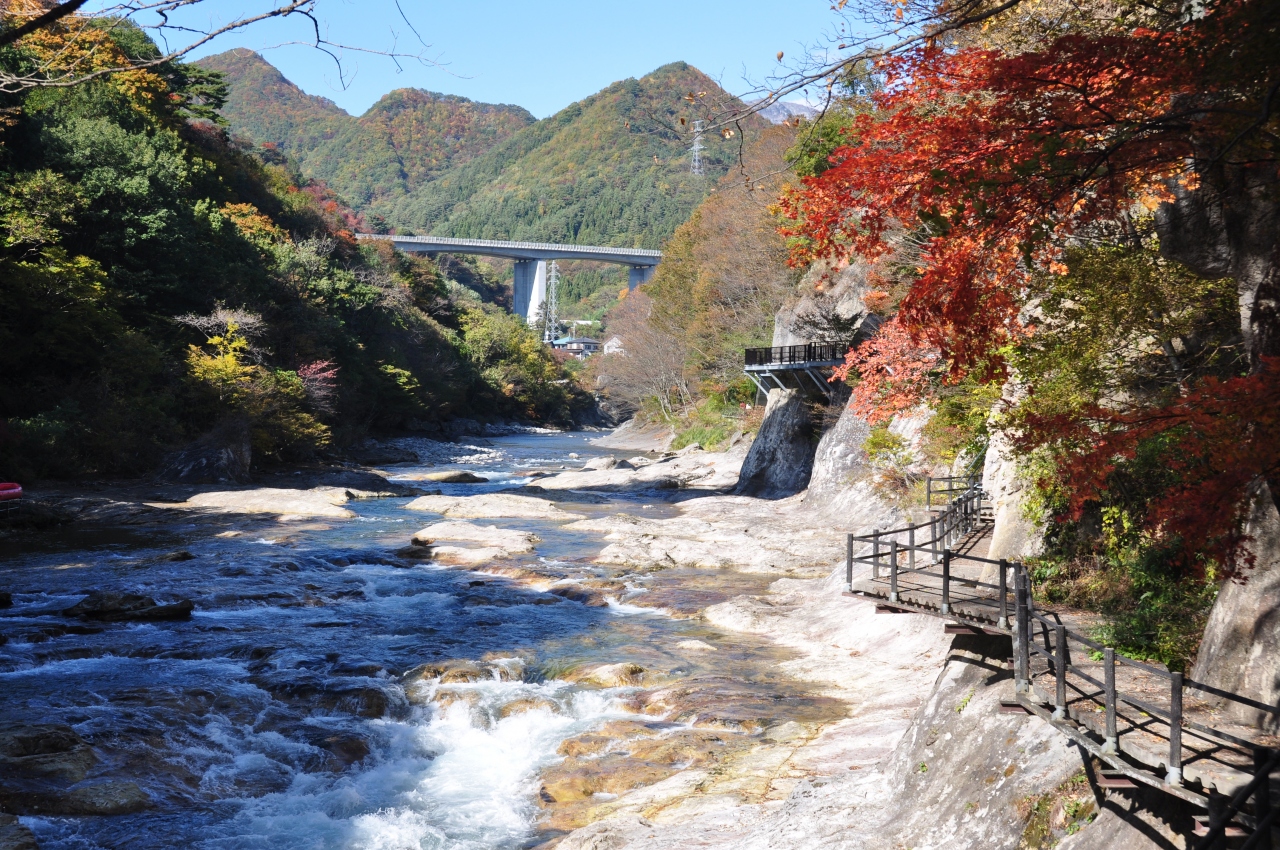 川の水はとてもきれいだし、渓谷も一部通行止めはあるものの楽しめます。