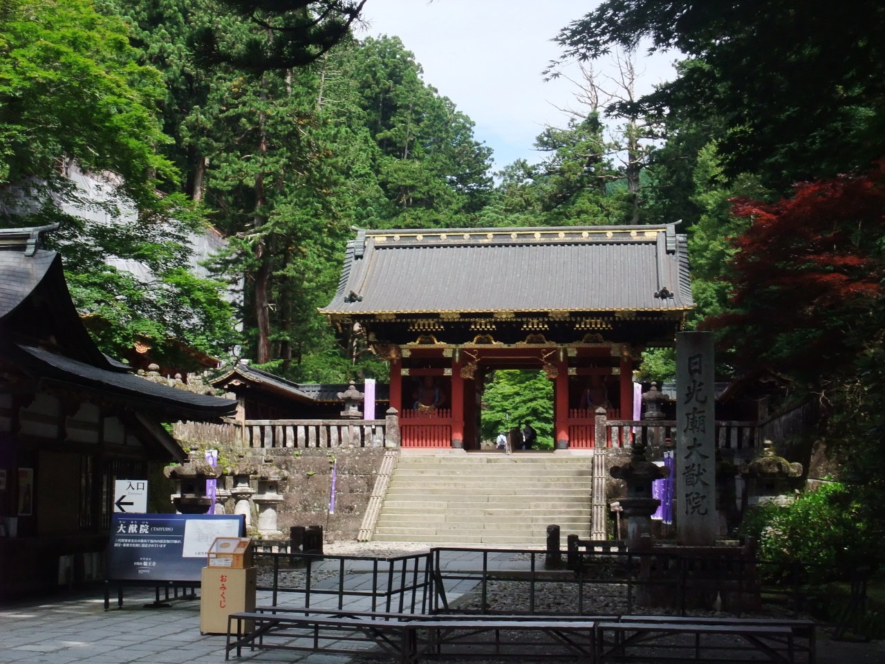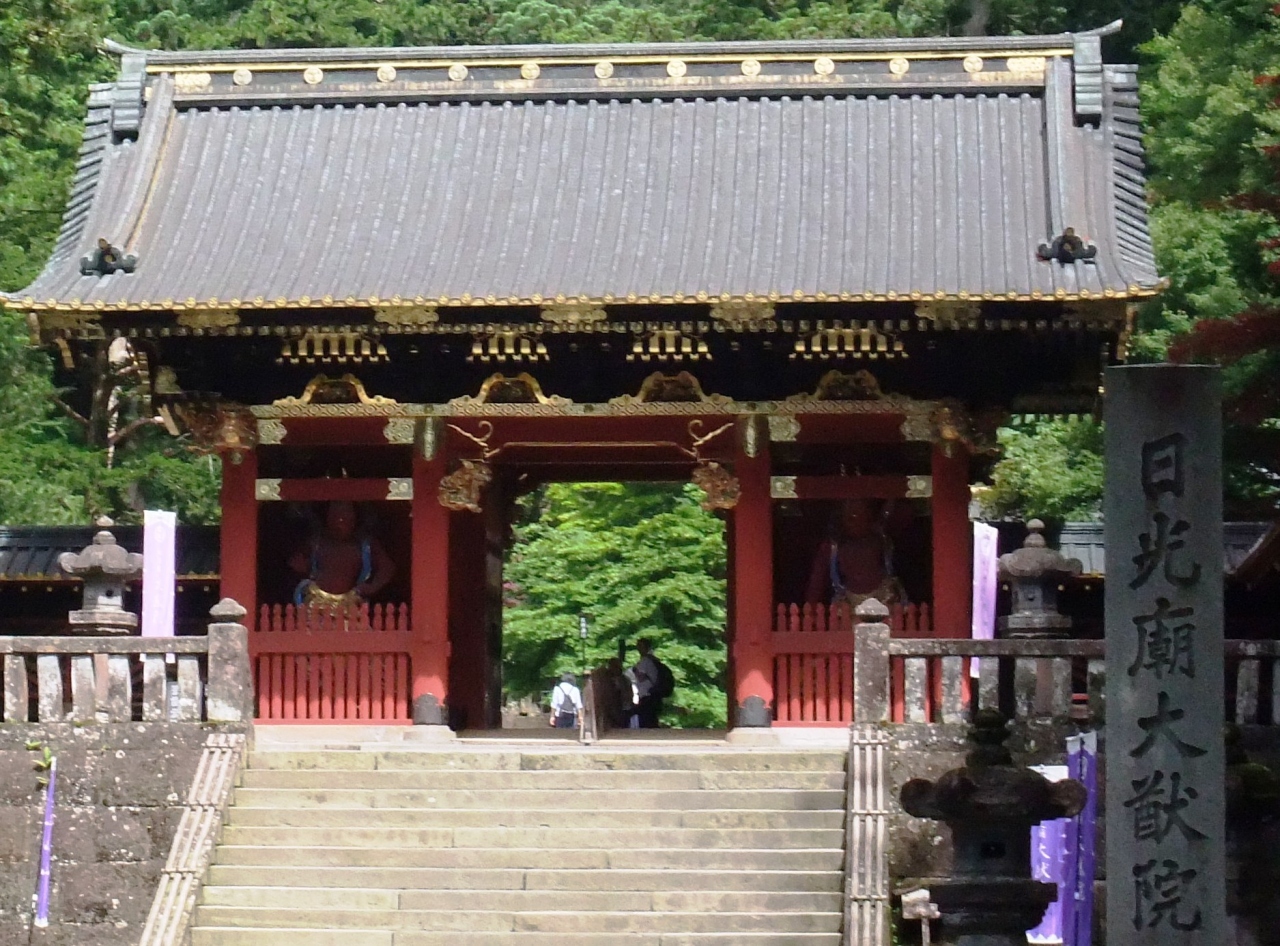 日光山内最奥の徳川三代将軍家光公の廟所、「日光廟大猷院」と書かれた大きな石柱の立つ日光山輪王寺・大猷院にやって来ると、見えているのが仁王門です。
