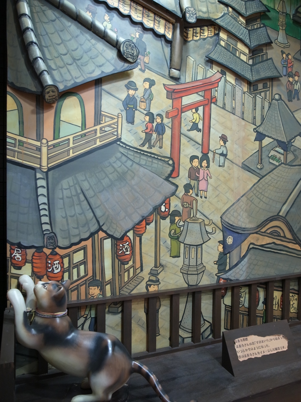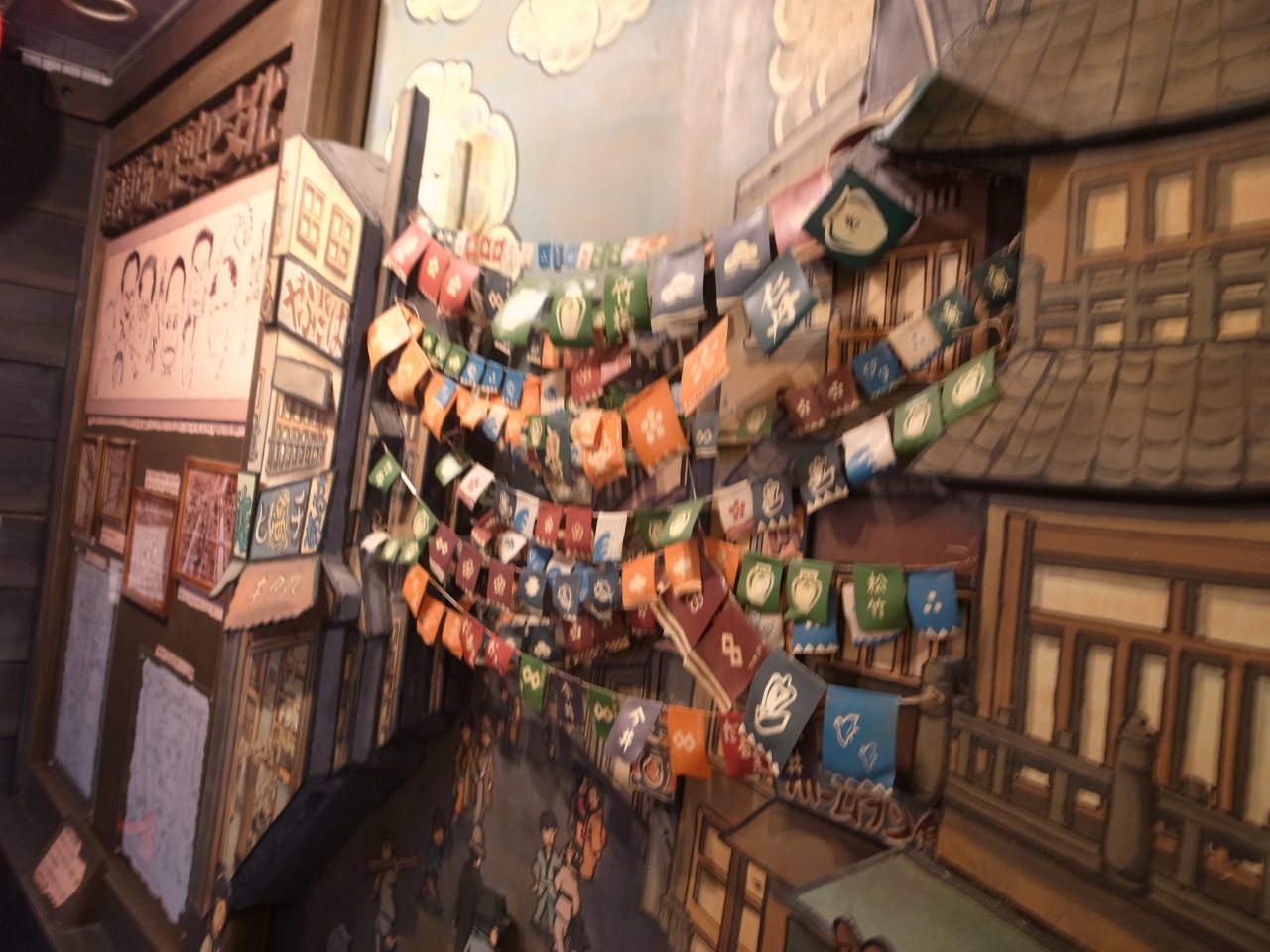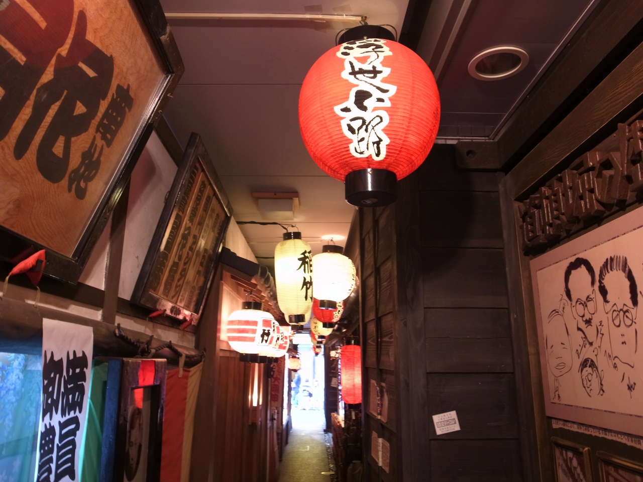 賑やかな道頓堀を歩いていたら偶然見つけました。本当に昭和の香りが残る、違う世界に行ってしまいそうな不思議な小路です。提灯がとても印象的で、壁に描かれた絵も昔の道頓堀商店街を偲ばせ、なかなか素敵です。昼間はとても静かで人通りもありませんでした。