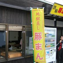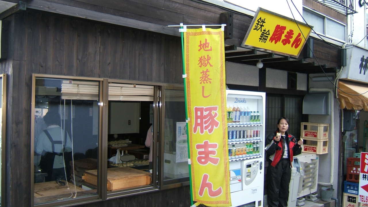 別府の中心地からは離れて鉄輪というところにある温泉街の一角にこのお店があります。角にある豚まん屋さんなんですが、ここの売りはなんといっても、おっぱいのそのままの形をした豚まんです。美味しいし、とてもユニークです。