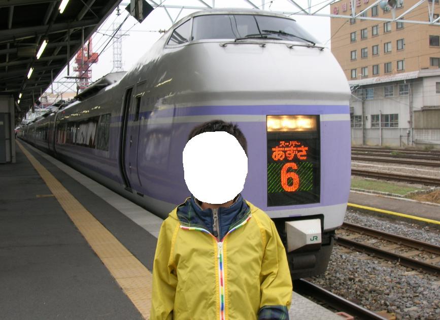 松本旅行の際、松本駅を訪れ、駅ホームにて特急「あずさ」の前でポーズ。子どもが電車が好きなため、各地の駅やローカル線、ローカル列車などよく観ました。各電車の車両基地にもよく足を運びました。ここ松本では、中央本線の特急がメインイベントですかね。新宿駅でも観れますが・・・・