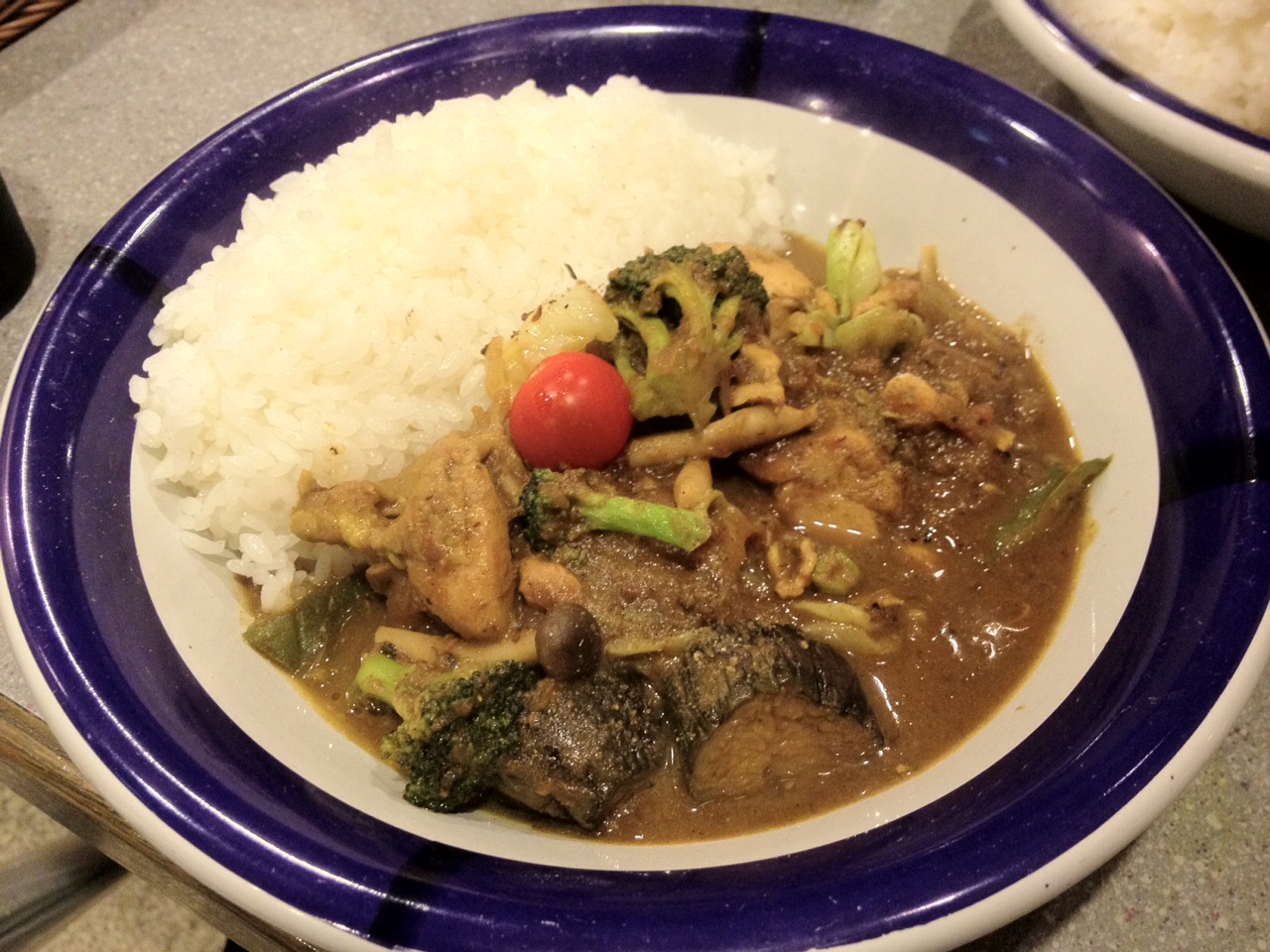 野菜カレーが気になったので、チキン+野菜カレーを注文。