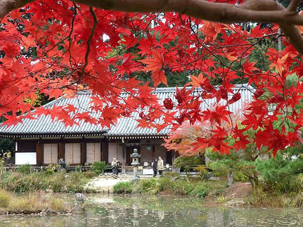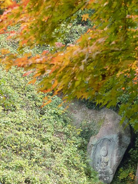 新緑の時期もいいが、やはり紅葉の時期が最も美しい。観光バスで団体客も訪れる奈良近郊の紅葉の名所。浄瑠璃寺のある当尾の里には石仏や磨崖仏が多く、山里の風景を楽しみながらこれらの石仏を訪ね歩くのも良い。その中でも大門の磨崖仏は見応えがある。