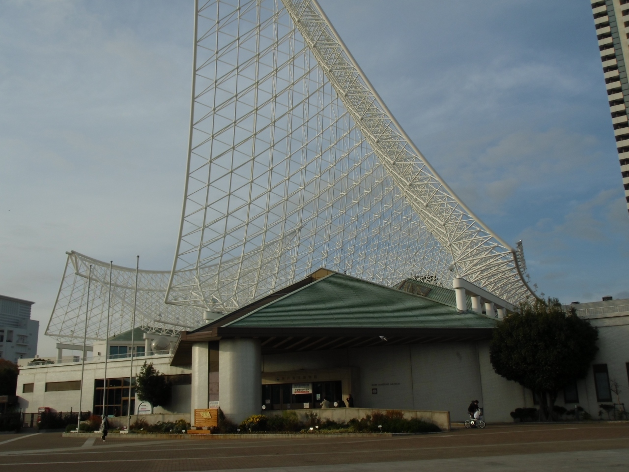 メリケン波止場方面へ歩いてくると、ホテルオークラとポートタワー、そして白い並みのような海洋博物館の、3つの建物のコントラストがとてもよい感じです。