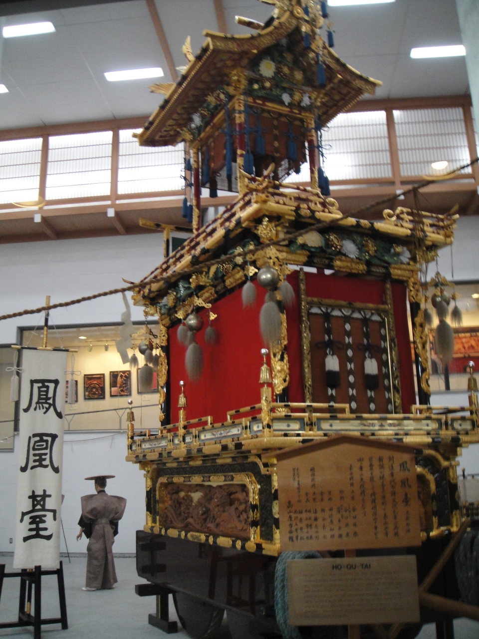 高山祭の時期に来れない人は、ここで雰囲気を味わってください。高山祭りに活躍する、豪華絢爛な屋台を1年中見ることができます。屋台の種類には、神楽台、鳳凰台、布袋台、金凰台など全部で10種類以上あります。それぞれの屋台に、それぞれ固有の歴史があるんです。また、一位一刀彫の彫刻も見事です。