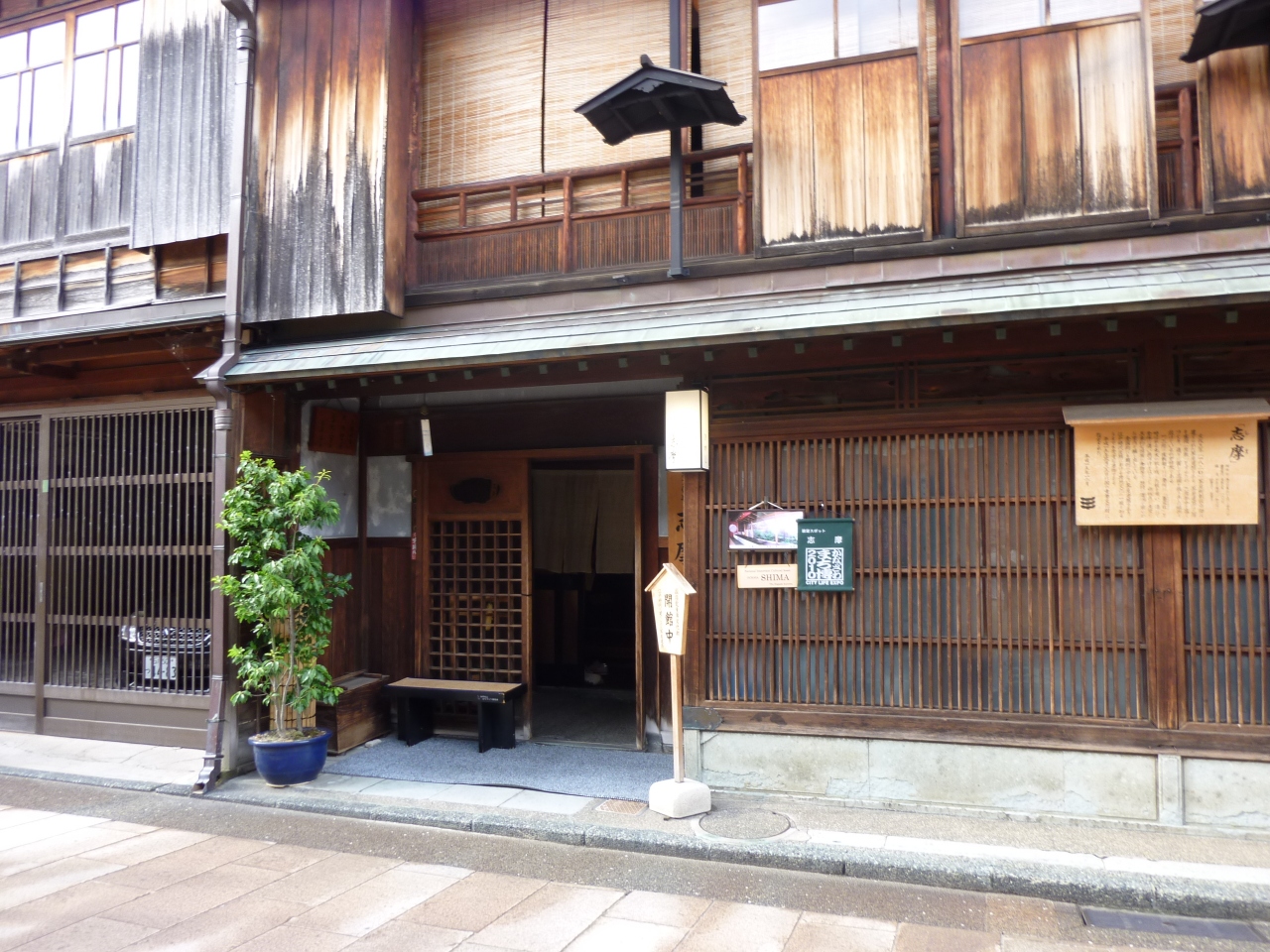 金沢で昔のまま残る一番大きい茶屋街の「志摩」です。