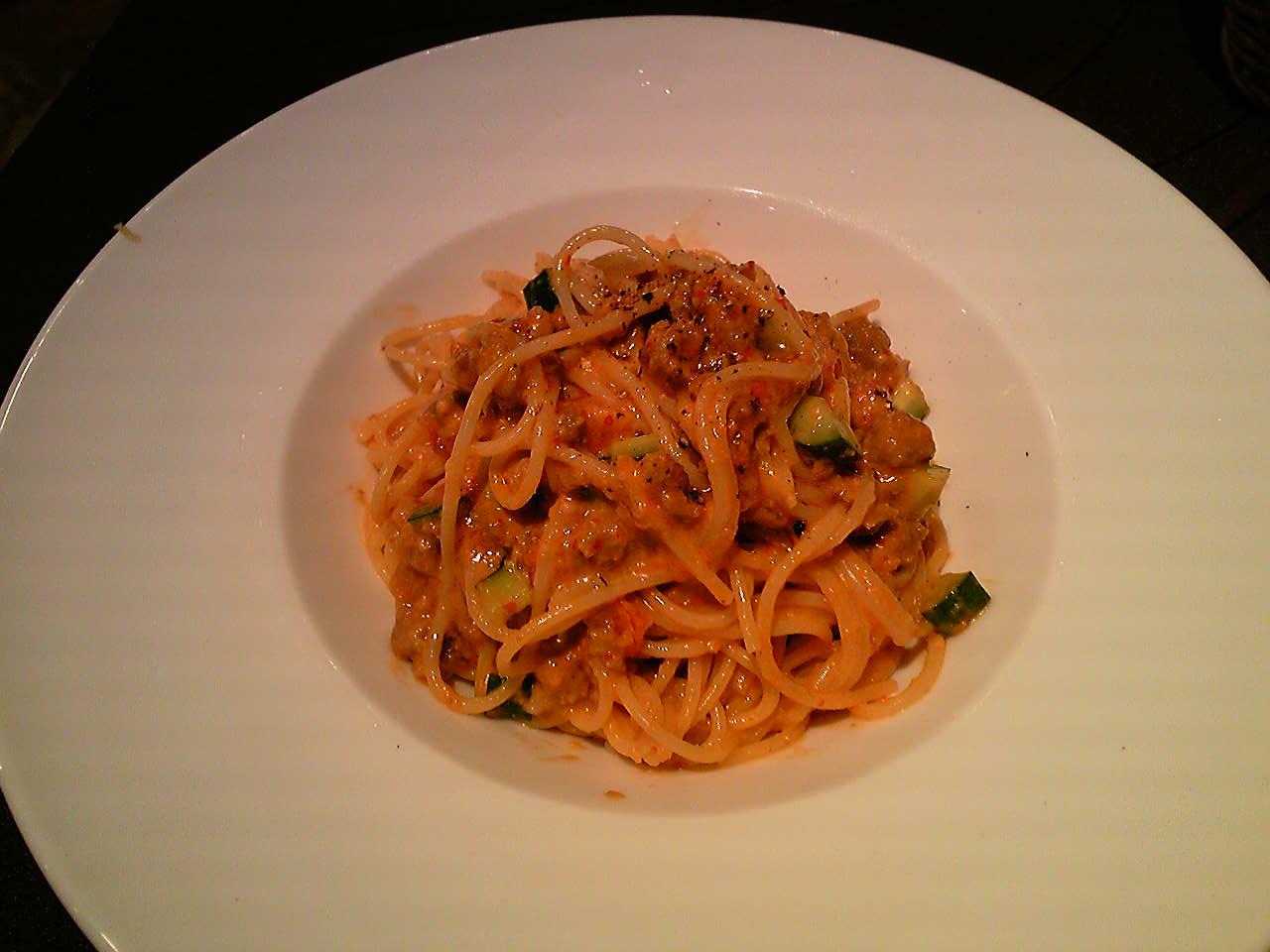 パスタ(ひき肉のピリ辛フェデリーニ)+サラダ+カフェ+ドルチェで1000円は満足度の高いランチです。