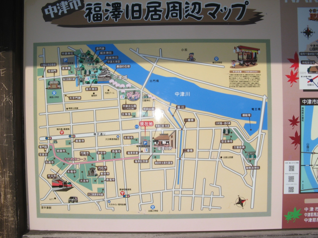 慶応義塾の創始者で、1万円札で同じみの福沢諭吉が19歳まで暮らした家です。国指定文化財に指定されており、瓦葺の屋根と土壁が特徴の小さな家でした。家の周りをウロウロしていると先祖が福沢諭吉の母方と知り合いだったと言う地元の老人が、中津市の歴史や福沢家のことなどを親切丁寧に説明してくれました。最近の日韓・日中情勢を考えてみて、今から120年以上も前に福沢諭吉が「脱亜論」の中で『日本の不幸は清(中国)と朝鮮だ、国際的な紛争の場面でも「悪いのはお前の方だ」と開き直って恥じる事も無い・・・』と断じたことを改めて考えさせられました。