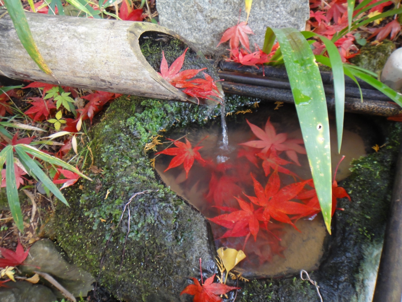 池の辺にそそり立つ見事な1本杉は御神木だそうで、