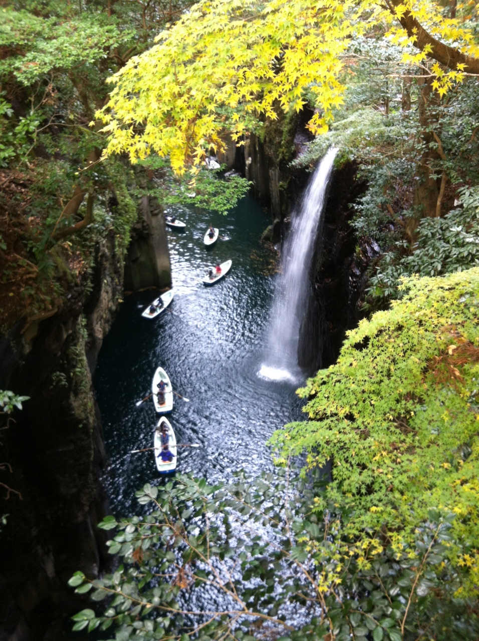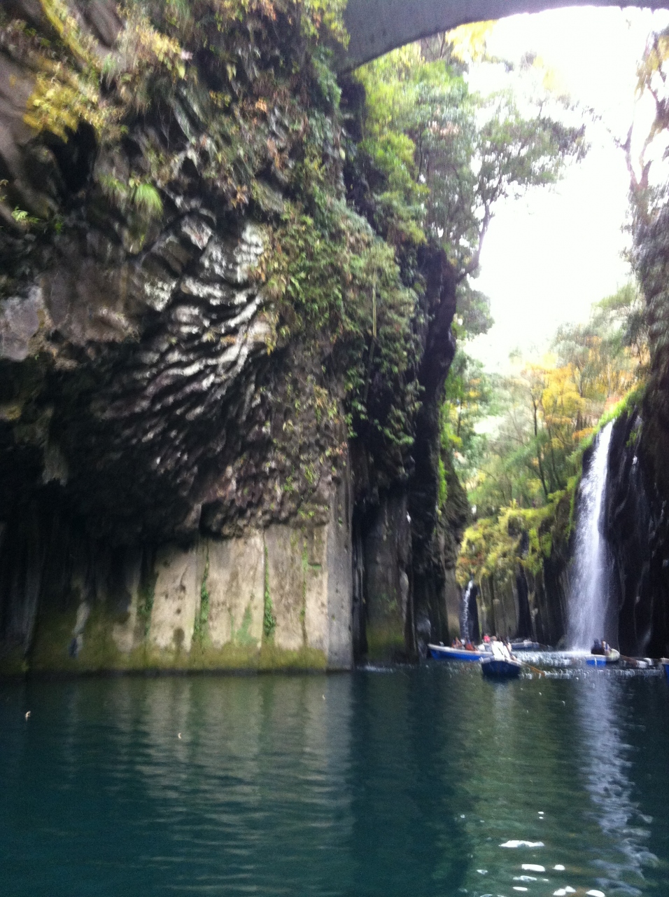 高千穂峡は神社から比較的近く、山道をくねくねとのぼった先にありました。