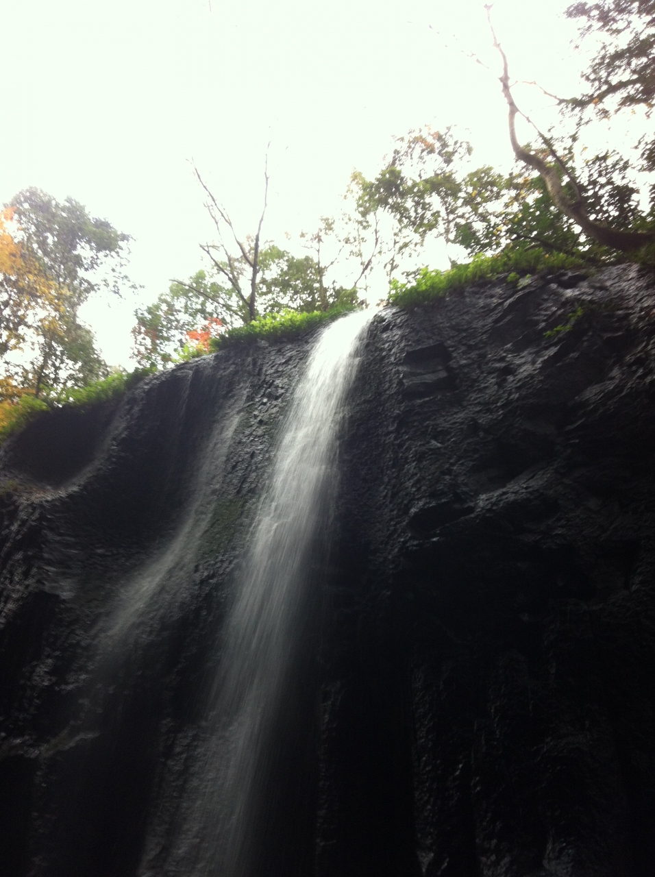 まさかあの小さな滝が、写真で見たアレ?と思ったら、その向こうに大きな滝が滝つぼめがけてスゴイ勢いで落ちています。
