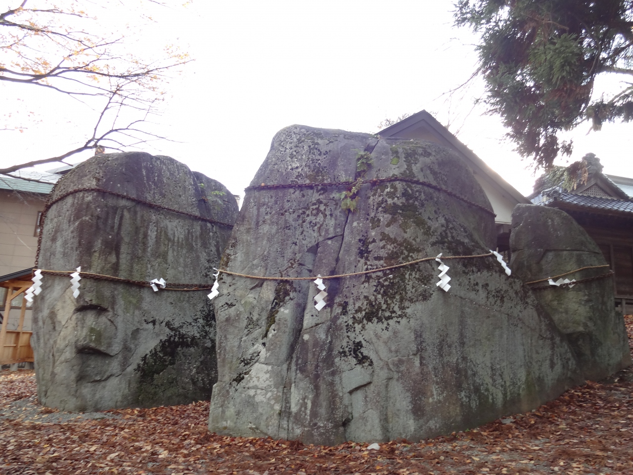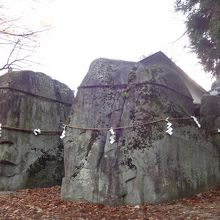 敷地はせまいですが、大きな三つの御神石がドンとあります。