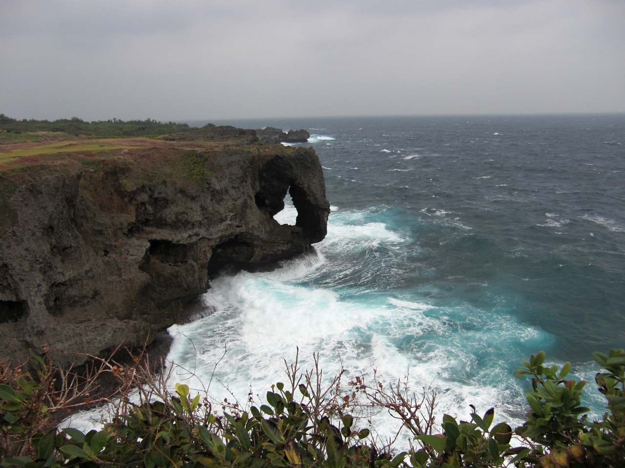 万座毛にレンタカー行ってきました。駐車場は20台くらいかな?広くないです。お土産屋さんは充実しています。駐車場から芝生を超えると荒々しい断崖が見えます。象さんの鼻に良く例えられます。『万座毛』の由来は、「万人も座する草原」だそうです。是非