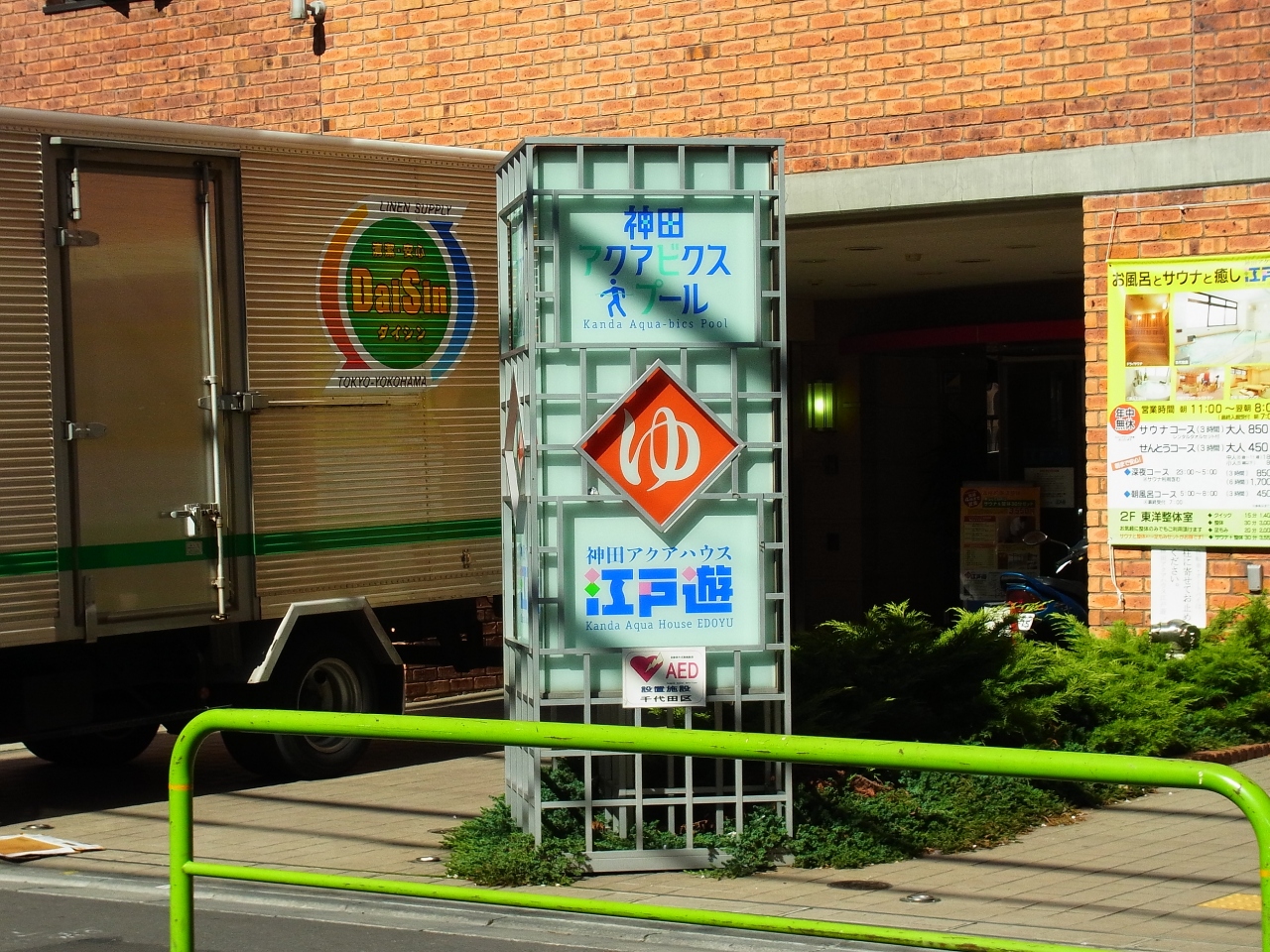 人工温泉ですが、一休みには充分ですが 神田の郵便局の傍のビルの中にありますから