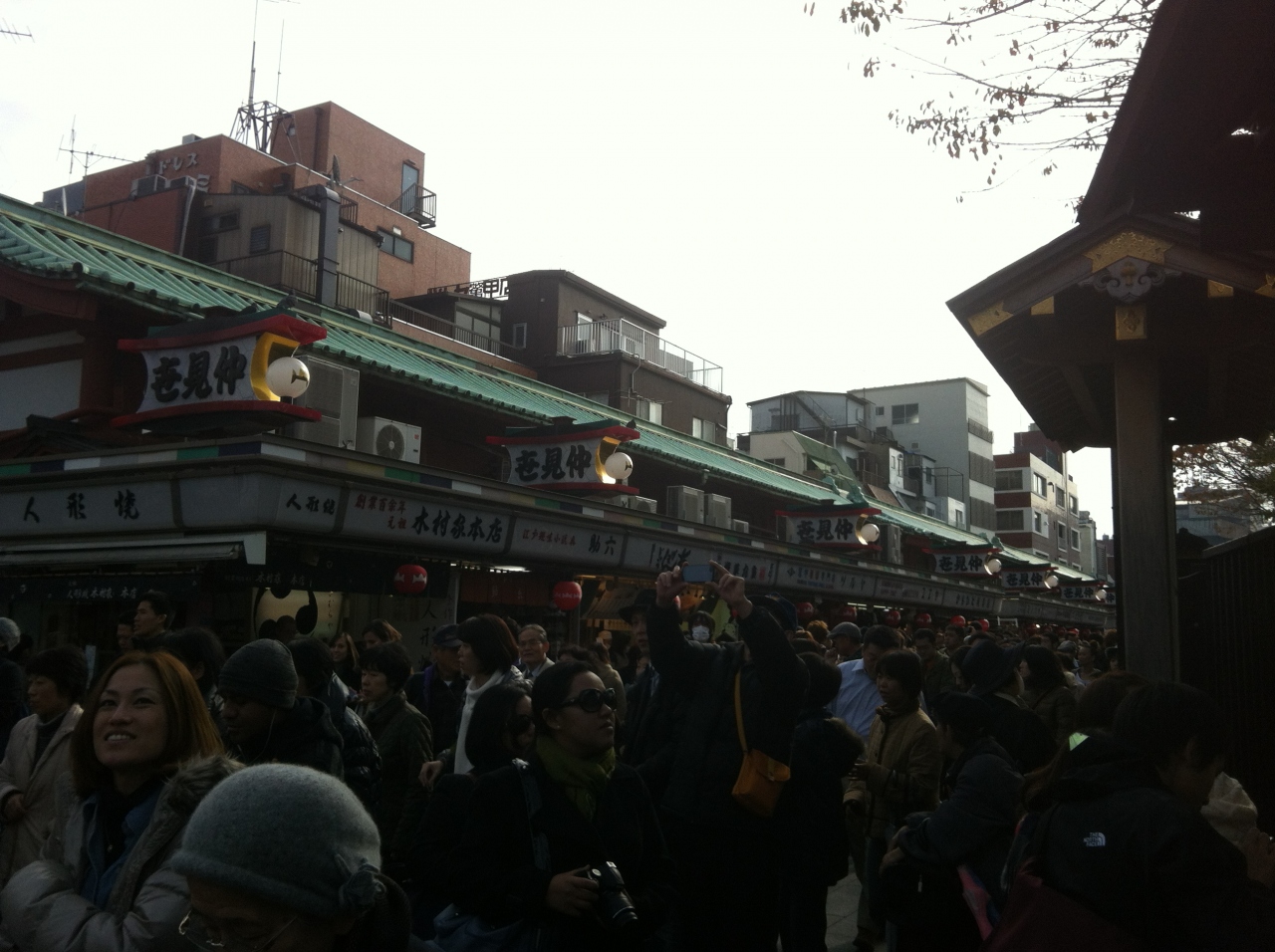 雷門から浅草寺までの通りにある観光客向けの商店街です。家族連れや外国人などの団体客が多いため、通りの流れは非常に悪くところどころで写真撮影や買い物待ちで団体が立ち止まるためにカオス状態です。ゆっくりと味わいたいならば、平日の午前中か夕方遅くがよろしいのではないでしょうか。