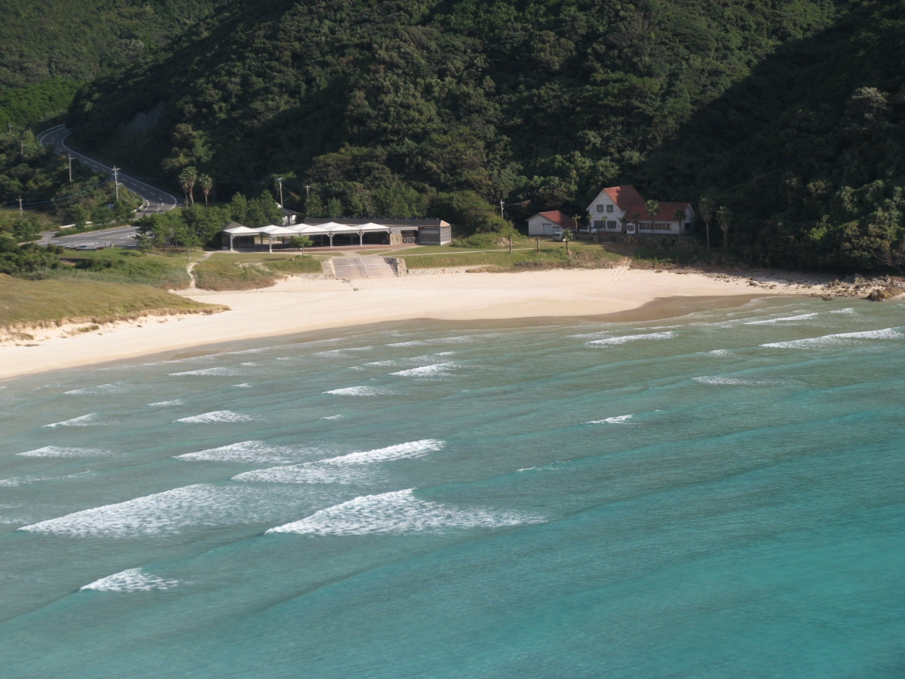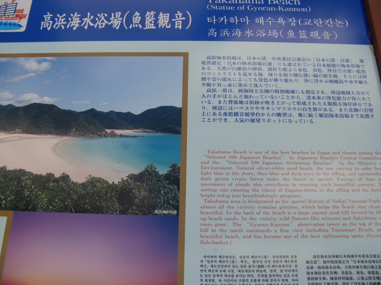 福江市街から国道384号線を40分ほど走ると高浜に到着します。日本の渚百選にも選ばれた浜辺で透明な海、綺麗な砂浜、周囲の風景も素晴らしい所でした。教会巡りをしている際に寄りましたが、10月だったので人っ子一人いない静かなところでした。夏には海水浴客で賑わうのでしょうか?