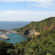有川港から国道384号、県道32号を車で約40分北上、白草峠から山道を少し入ると「赤ダキ断崖」があります。断崖は、ここが大規模な火山の噴出口であったことを今に残しており、学術的にも貴重であることから昭和53年に長崎県指定天然記念物に指定されています。