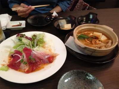 串焼きや小さな鍋、そしてカルパッチョ等を注文。