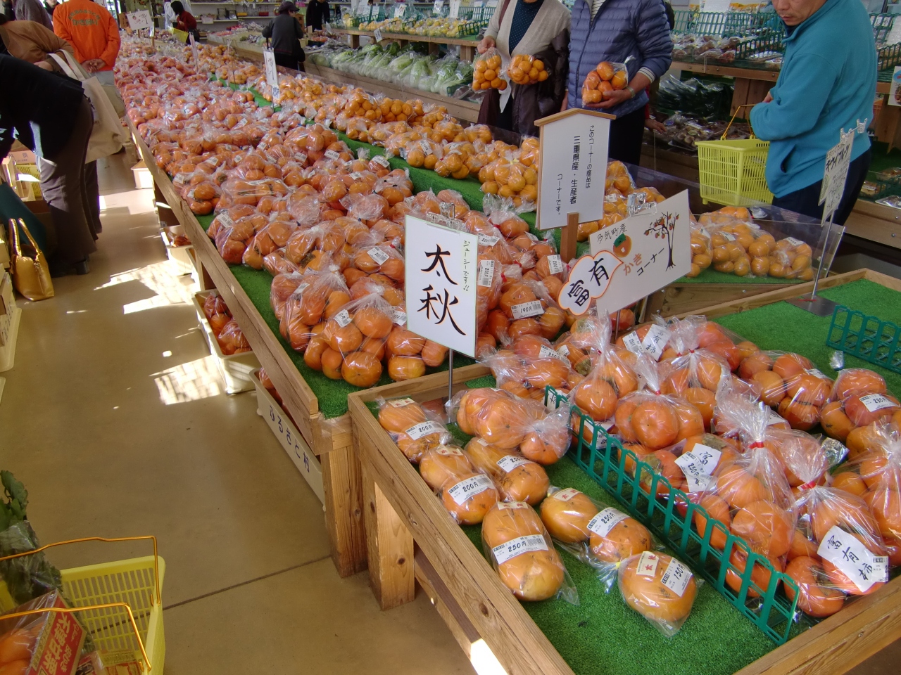 秋に行きましたので地元の柿がたくさん置いてありました。あとは伊勢芋とか。安くてたくさん買えるのでその点はいいと思います。