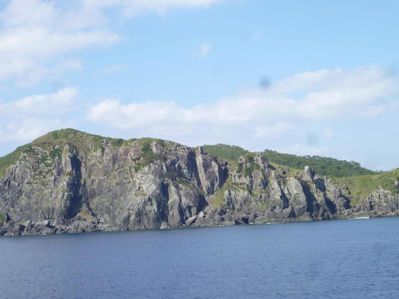 今回、陸から行く時間がなかったので、フェリーに乗って帰る途中にその絶壁の様子を写真に撮りました。