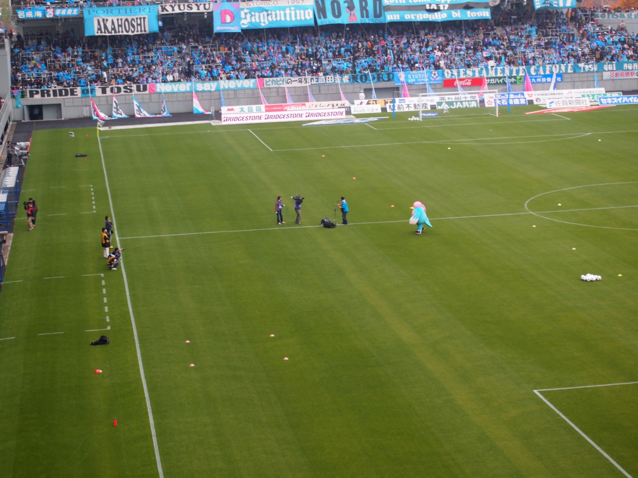 鳥栖駅から、線路を渡るとそこにはスタジアムがあります。 駅からも非常に近く、入った感じは、イングランド2部リーグって、こんな感じのスタジアムなんだろうなーっと、思わせる作りです。 残念なことに、スタジアムには、全くと言ってよいほど、食べ物がなく、せっかくサッカー観戦に来ても、おもてなしの心が見えてきません。
