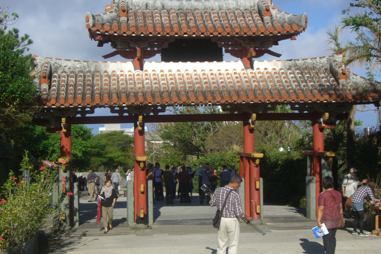 守礼門は首里城へ訪れる人が最初に目にする門で、名前の通り赤い柱に赤い屋根で出来ており、中国風の門です。