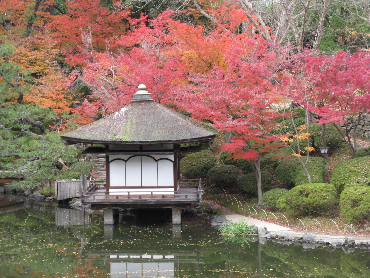和歌山城公園の北、観光バス駐車場前にある紅葉渓公園の紅葉は、今が見ごろ。