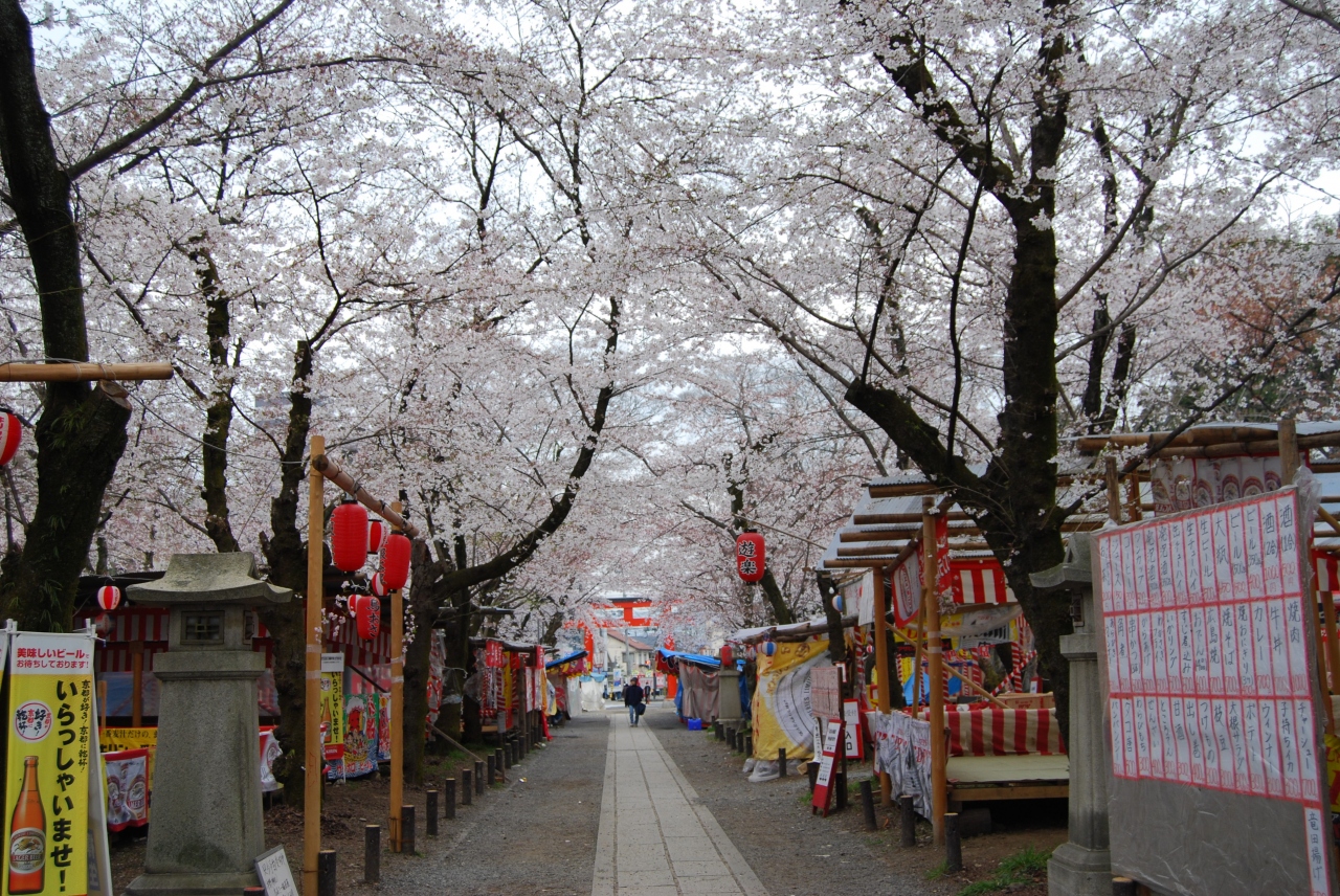 円山公園の枝垂桜の祖の桜も含め、境内全域では約400本の桜があります。