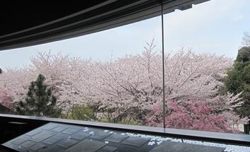 普段は館内撮影禁止ですが、桜の時期は2階の窓から飛鳥山公園の景色を