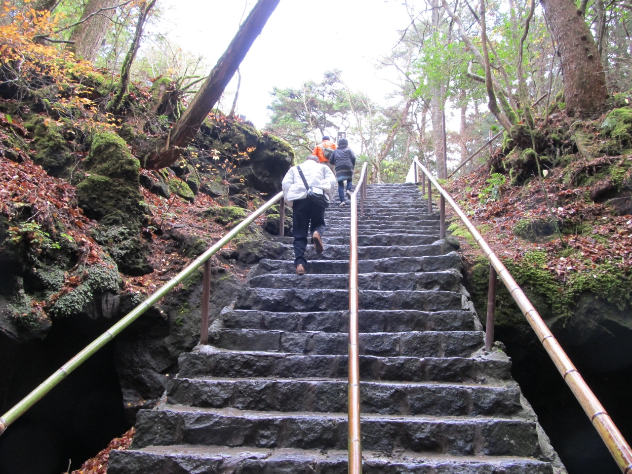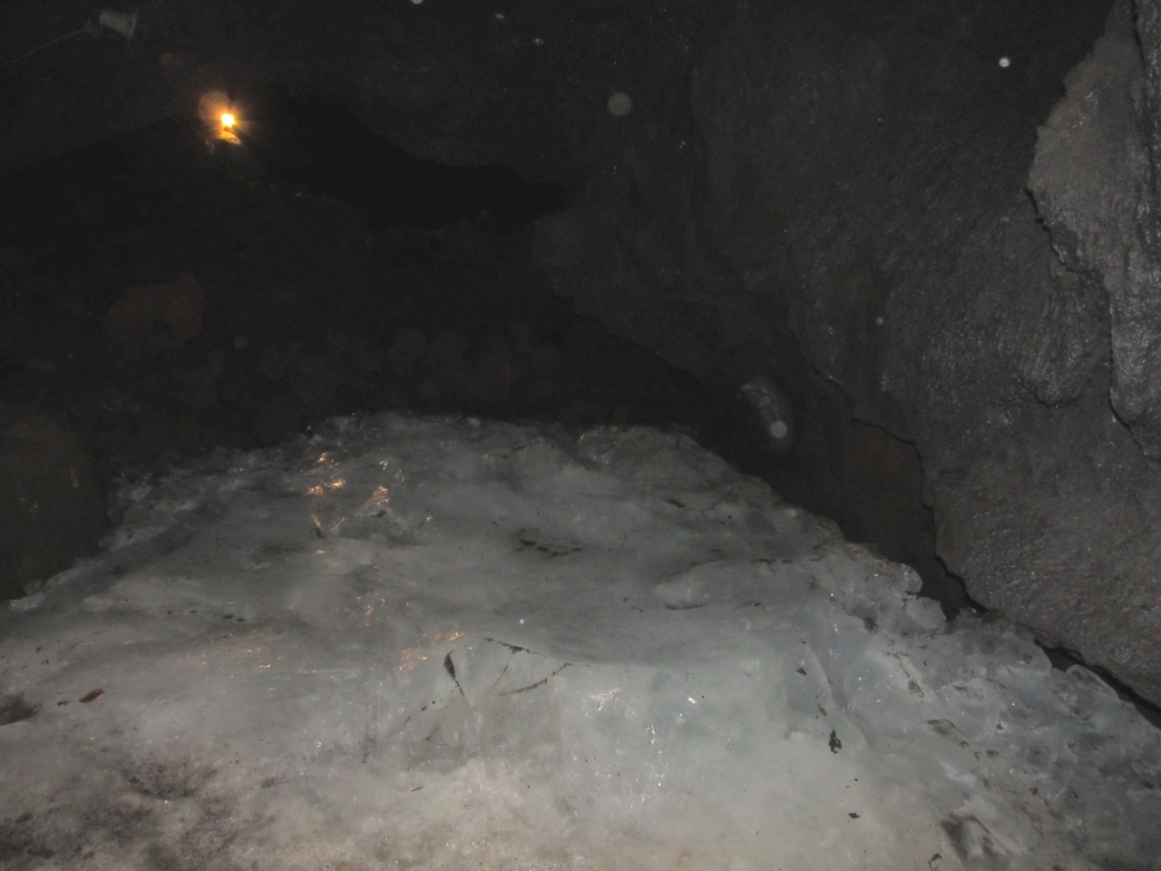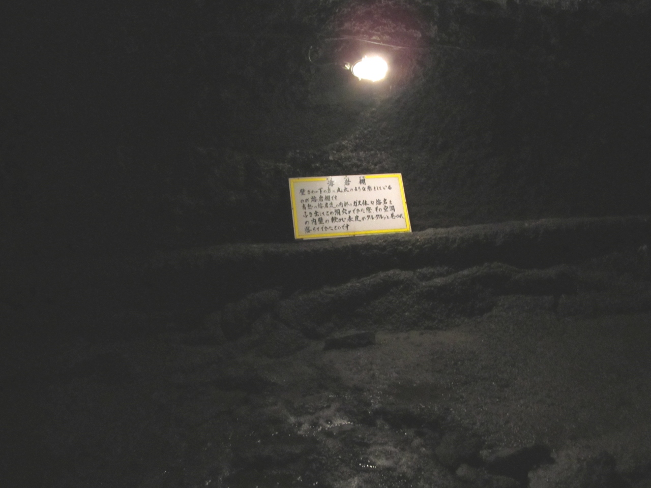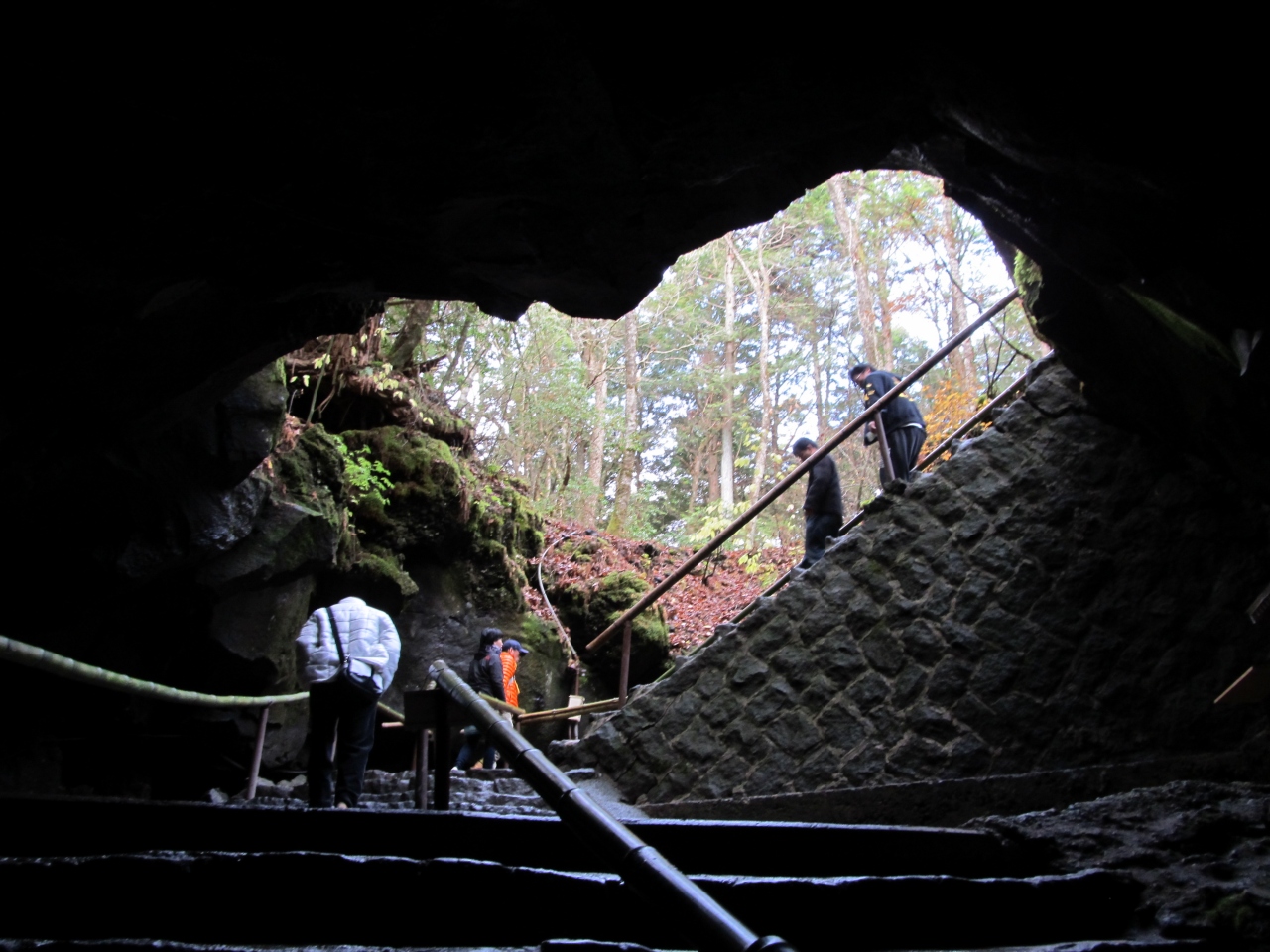 入口は広いが中は狭く、天井も低い。カメラ撮影に気をとられて、頭を天井にぶつけてしまった。富士山の溶岩は堅かった (@▽@)