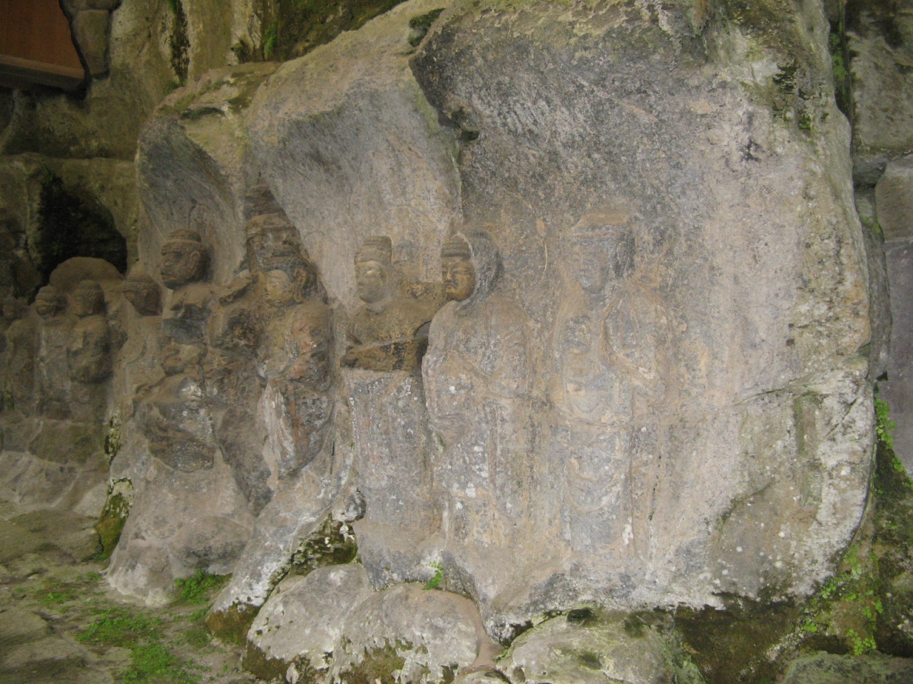 「臼杵石仏」は大分市内中心部から、津久見方面へ車で1時間たらず、臼杵市深田にある、平安時代後期から鎌倉時代に造られた4群60余体の石仏群で国宝に指定されています。
