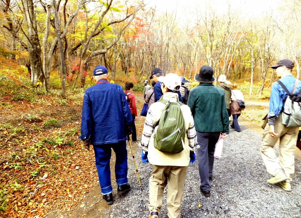 殆ど登りだがそんなにきつくはない、途中紅葉を眺めながら頂上の展望台へそこから駒止めの滝を眺め、又茶臼岳がまじかに眺められ全員大満足して降りました