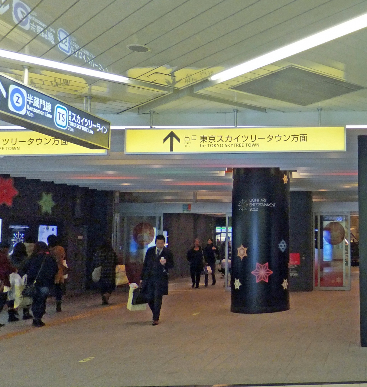 東京スカイツリーの開業後、”スカイツリー前”の副駅名がつきました。しかし、東京スカイツリーに直接上りたいのであれば、東武スカイツリーラインの”とうきょうスカツリー駅”の方が便利なので注意が必要です。